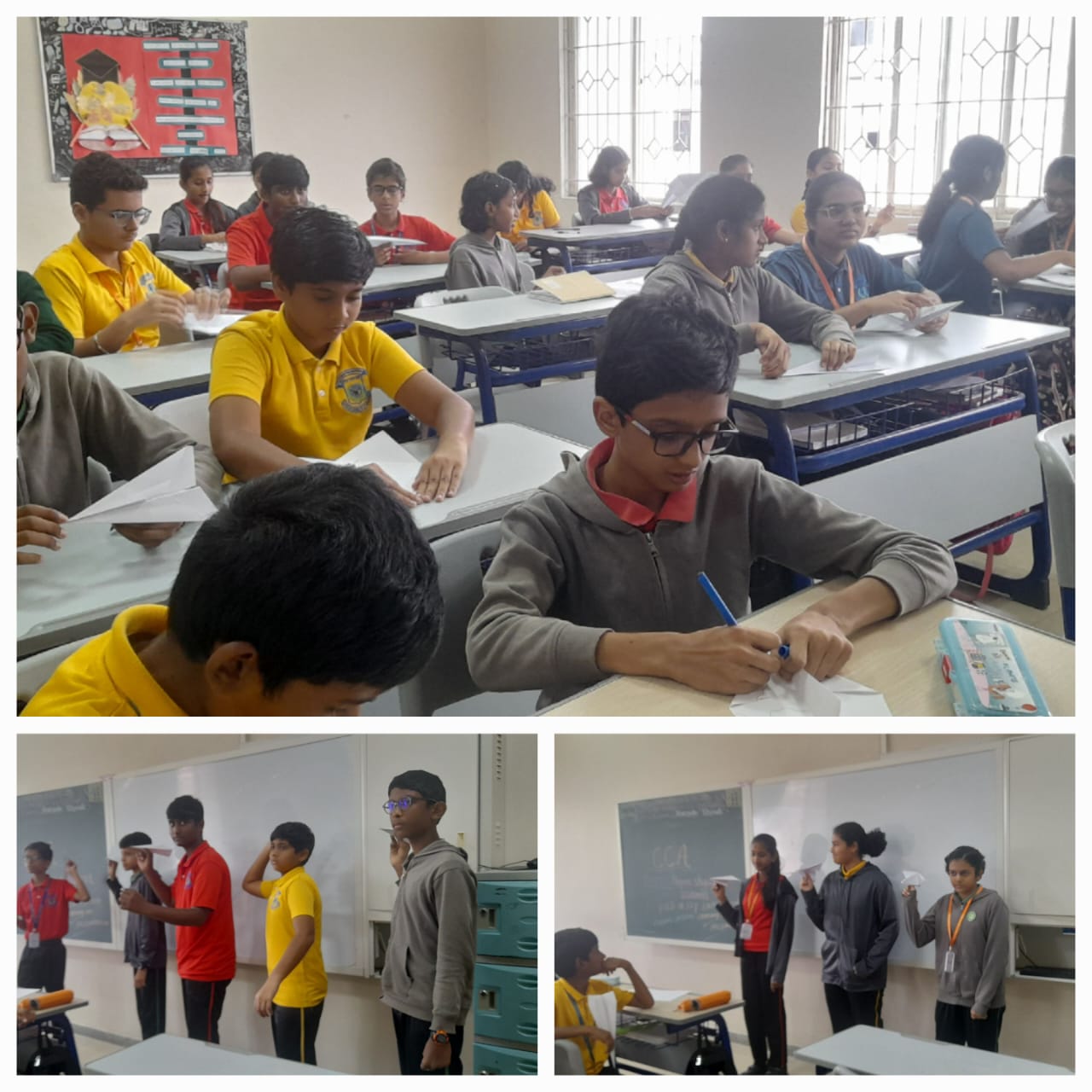 Grade 8 students were provided the opportunity to display their imagination, creativity and dexterity at paper folding CCA on the topic: PAPER SKYWARD SOARERS conducted on 4th September 2024. This competition was conducted to develop the imagination and creative skills amongst students. It was marvellous to see the transformation of a flat sheet of paper into a finished paper planes through folding and sketching. Students created unique and exclusive shapes and structures to showcase their finesse in paper craft.