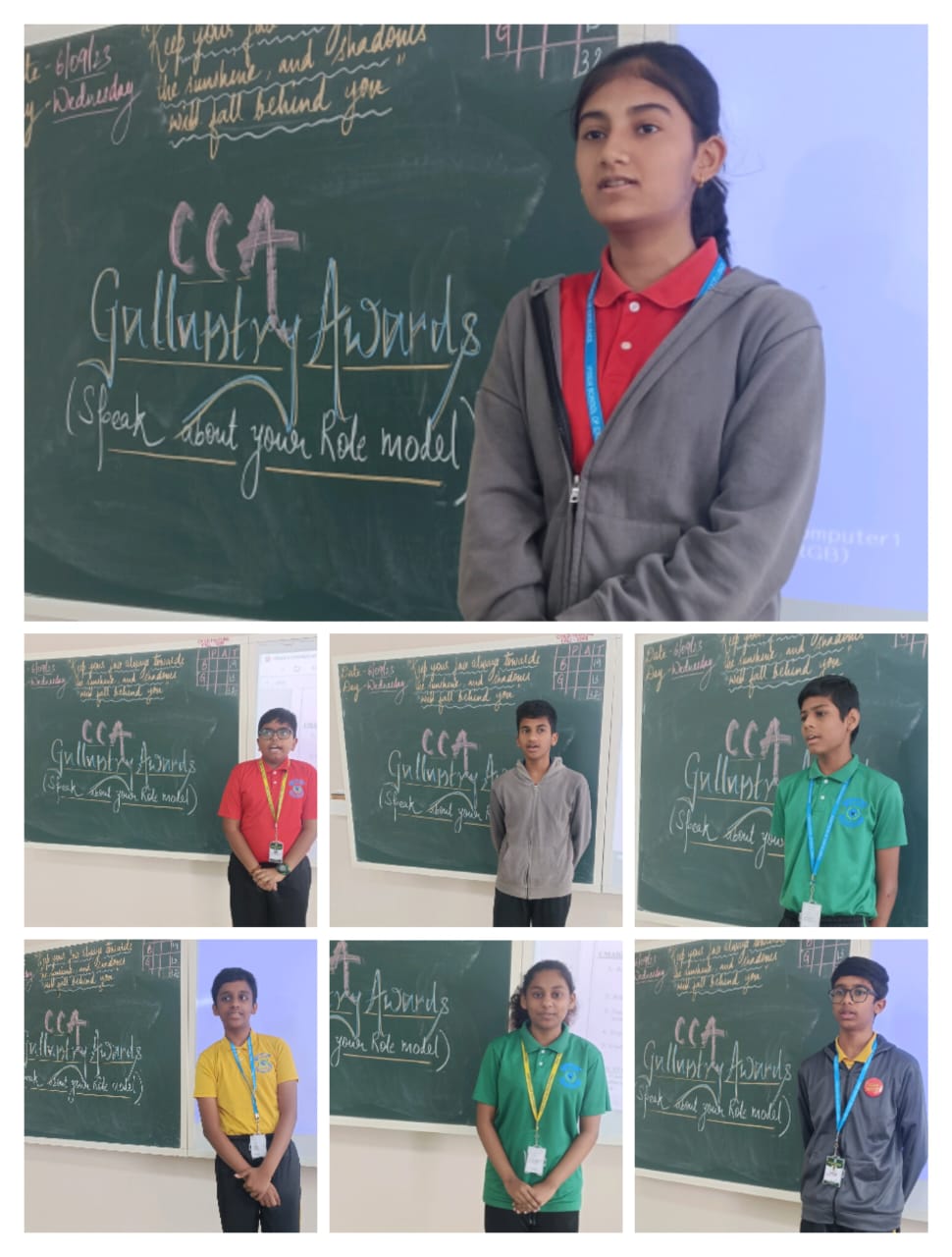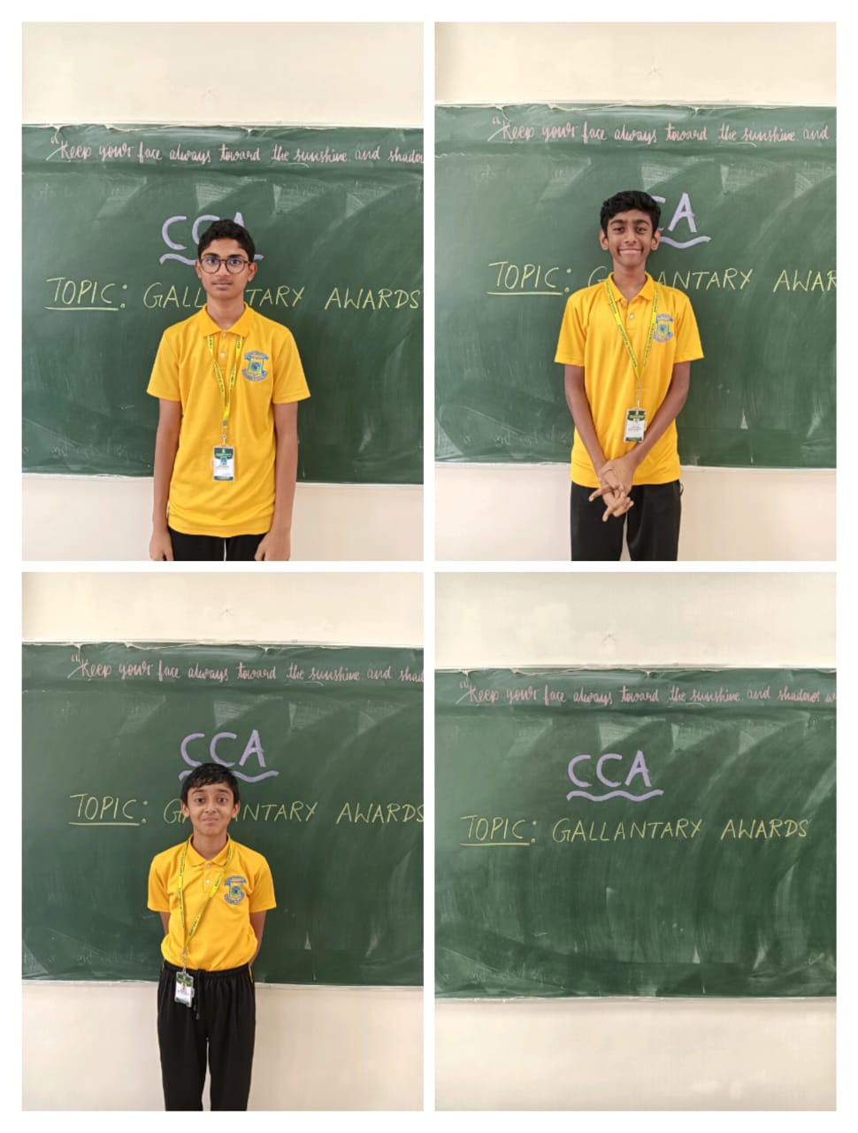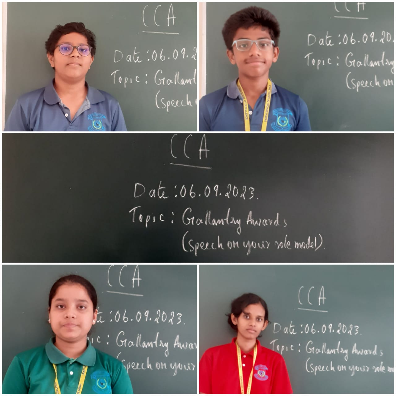 As a dazzling display of eloquence and reverence, our school Vydehi School of Excellence recently hosted the CCA activity for the month of September where students of class 8 celebrated their heroes and inspirations in the “GALLANTRY AWARDS- Role Model Speech Competition.” The event was nothing short of awe-inspiring, as young minds took center stage to pay tribute to the giants who have left an indelible mark on their lives.