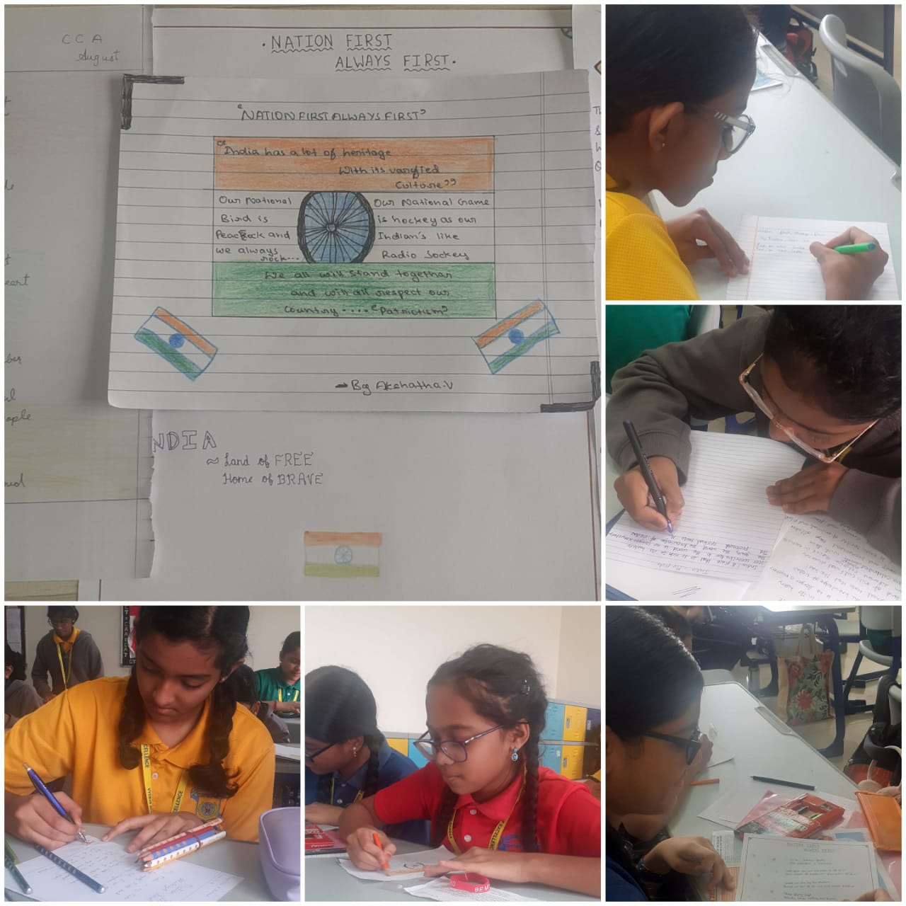 In order to create awareness of poetry in modern era & to demonstrate the ability to write a poem, Vydehi school of Excellence has organized a CCA for the month of August with the theme “NATION FIRST, ALWAYS FIRST.” The students were instructed to compose a poem with the same theme. The competition was held on Wednesday, 02nd August, 2023.