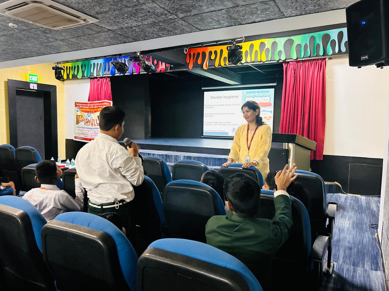 Dr. Sishira captivated young minds by classifying the value of maintaining good health and hygiene as it is crucial for students as it directly impacts their academic performance, physical well-being, and overall development. One of the key aspects of maintaining good health is through proper nutrition, and staying hydrated by drinking an adequate amount of water each day is crucial for overall health. The workshop also focused on how cleanliness makes us attractive.