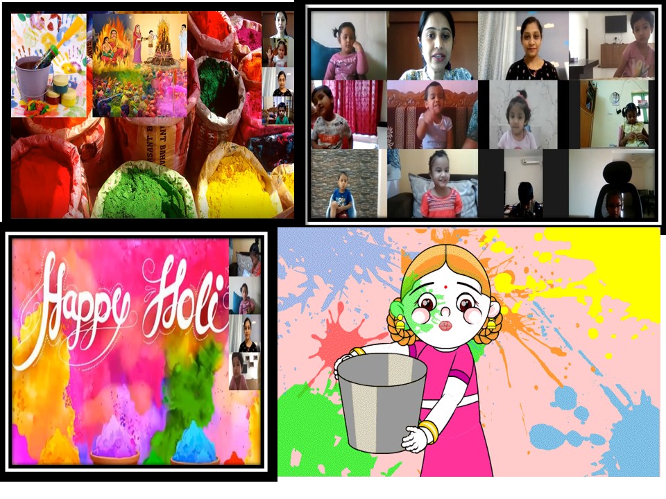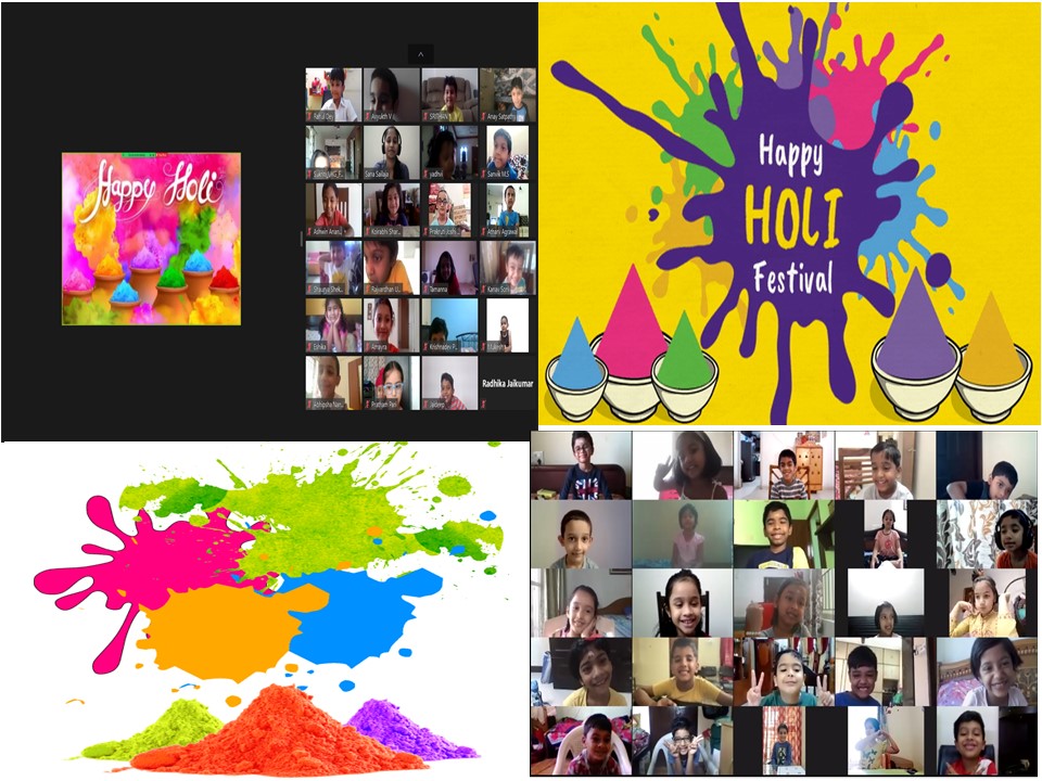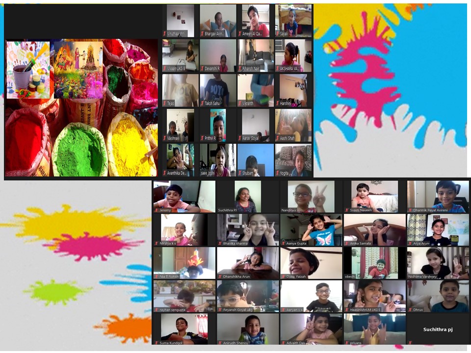 Vydehi School of Excellence celebrated Holi virtually for our Pre-primary students on 26th March 2021, with great enthusiasm and gaiety. Children came dressed in colourful clothes. Teachers shared some valuable information about Holi to enhance their learning.