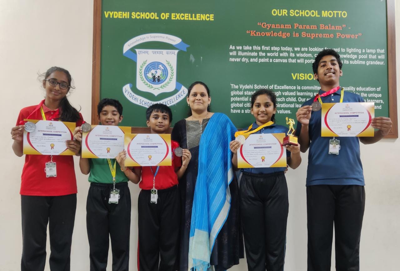 On Saturday 05th August 2023, the Vydehi Badminton teams participated in the inter school badminton tournament organized by Vahe Global Academy at White Birdie badminton academy, Bengaluru. Our badminton players of Vydehi had brought laurels to the institution by winning the below mentioned categories: