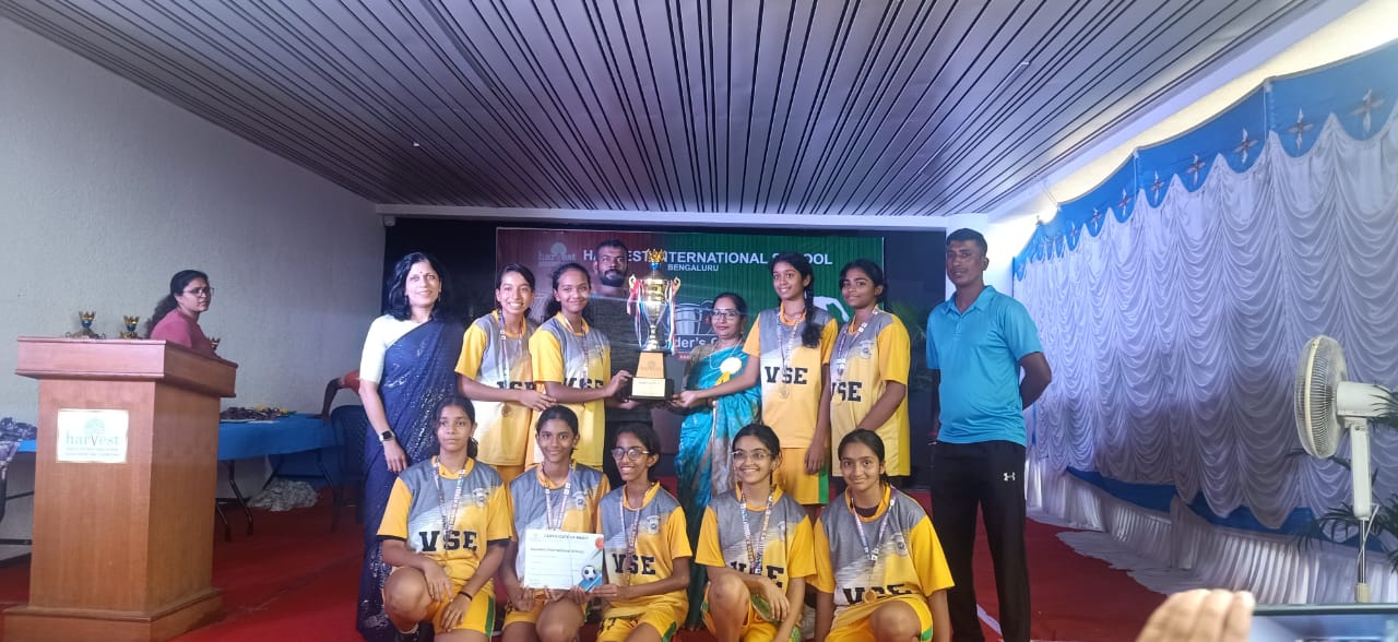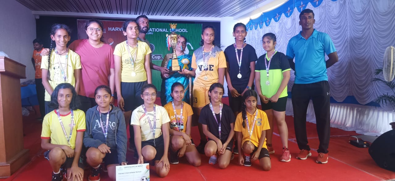 We are proud to announce that our U-14 Boys & U-14 Girls teams’ of Vydehi School of Excellence, have won winners’ trophy in the interschool basketball tournament organized by Harvest International School on Saturday, 15 July, 2023. The final MVP was given to Jeyashree of grade 9 from girls’ team and Abhinand of grade 9 from boys’ team. We are also proud to announce that our upcoming U-12 girls’ team has won runners trophy in the same tournament.