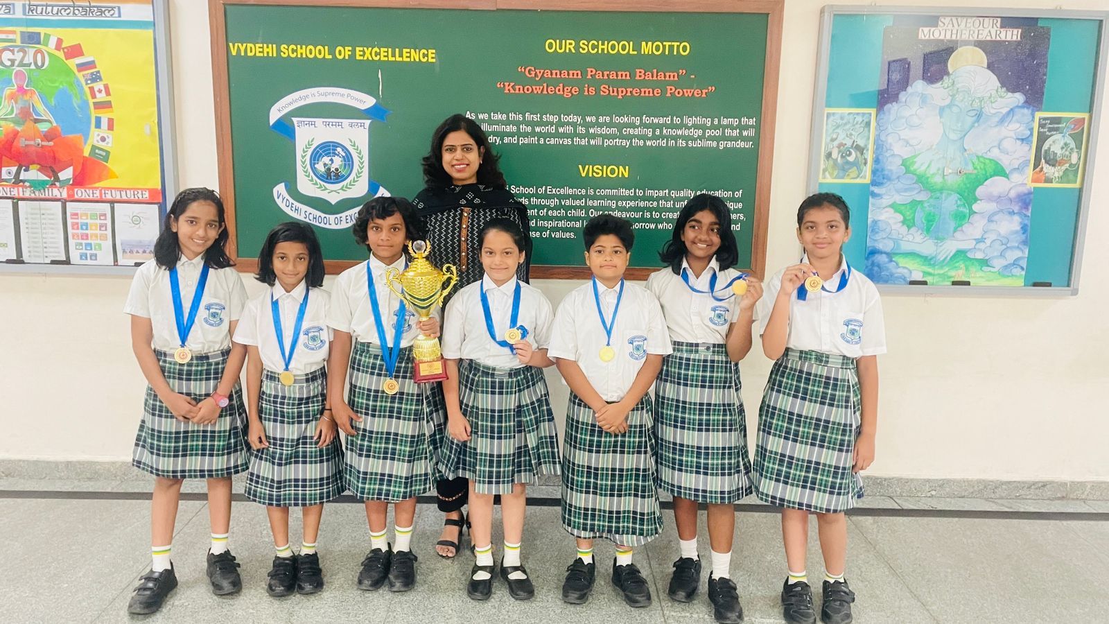 The Vydehi School of Excellence football team delivered an exhilarating performance in their recent interschool football tournament organized by Navaprajna Public School, Bengaluru, on 20th July 2024, securing a well-earned victory. U-13 girls bagged the runners up trophy whereas U-11 girls grabbed the winner position. This win highlights the team’s skill, strategy, and unyielding determination.