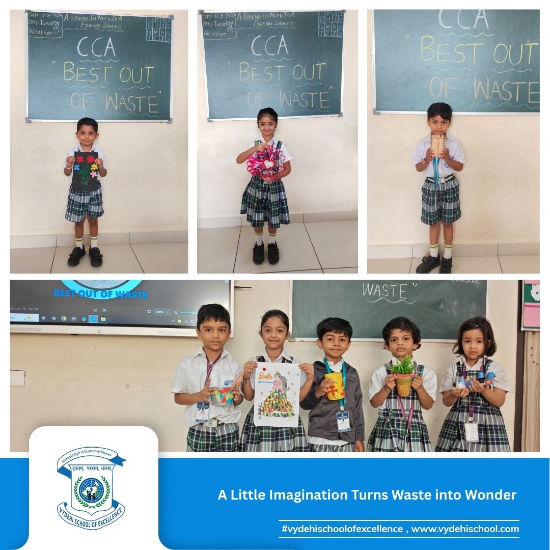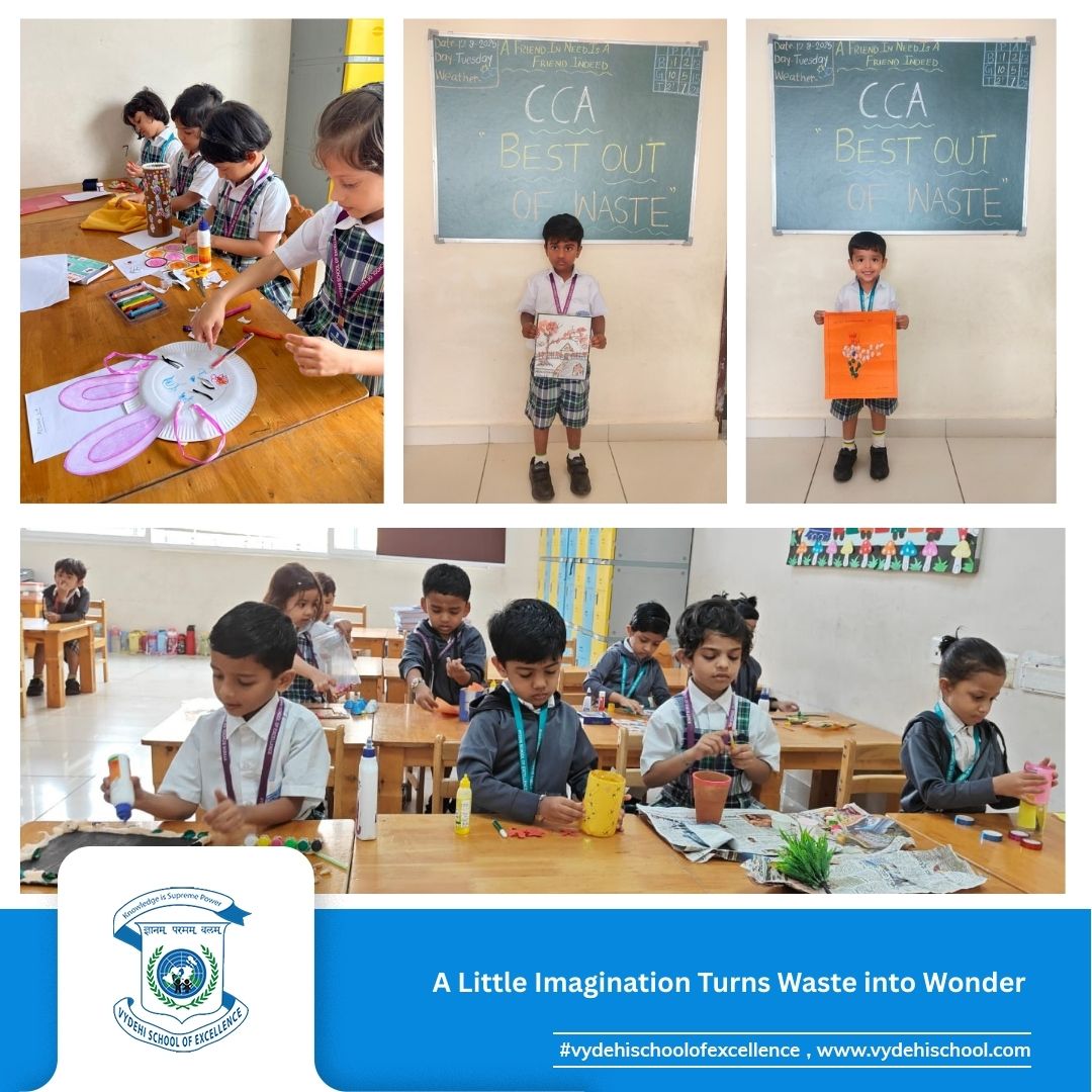 On 12th August 2025, Vydehi School of Excellence proudly hosted an exciting CCA — “Best Out of Waste” — for our creative LKG superstars! 🎨✨