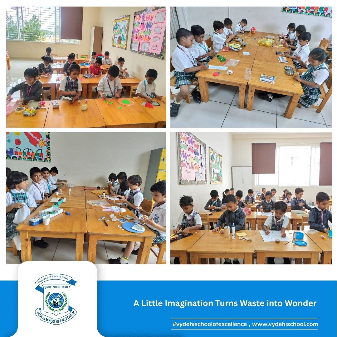 #VydehiSchoolOfExcellence #BestOutOfWaste #EcoFriendlyKids #LittleArtists #SustainableLiving #ThinkOutsideTheBox #WasteToWonder #YoungCreators #JewelleryMaking #EcoWarriors #CreativityUnleashed #RecycleReuseReduce #LKGStars #SchoolEvent #EcoFriendlyFun #CreativeKids #FutureLeaders #GoGreen #EnvironmentMatters