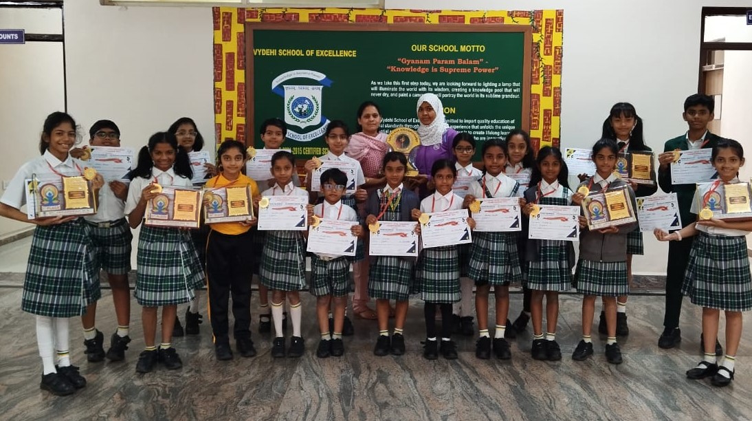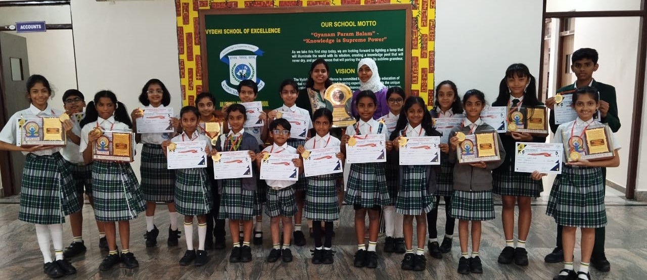 The little yogis of Vydehi School participated in National Level Yoga Open Championship on 7th January,2024 at Patanjali Yoga Kendra. Shambhavi of grade 5 secured the First position in the under 12 Girls category, Kaashvi of grade 5 secured the Second position in the under 12 Girls category, Tanushree of grade 4 secured the Fifth position in the under 12 Girls category, Upasana of grade 5 bagged the Second position in the under 15 Girls category, Siyona of grade 6 secured the Third position in the under 15 girls and Deepthi of Grade 4 secured the Fourth position in the under 15 Girls category and Vydehi received the Team Cup.