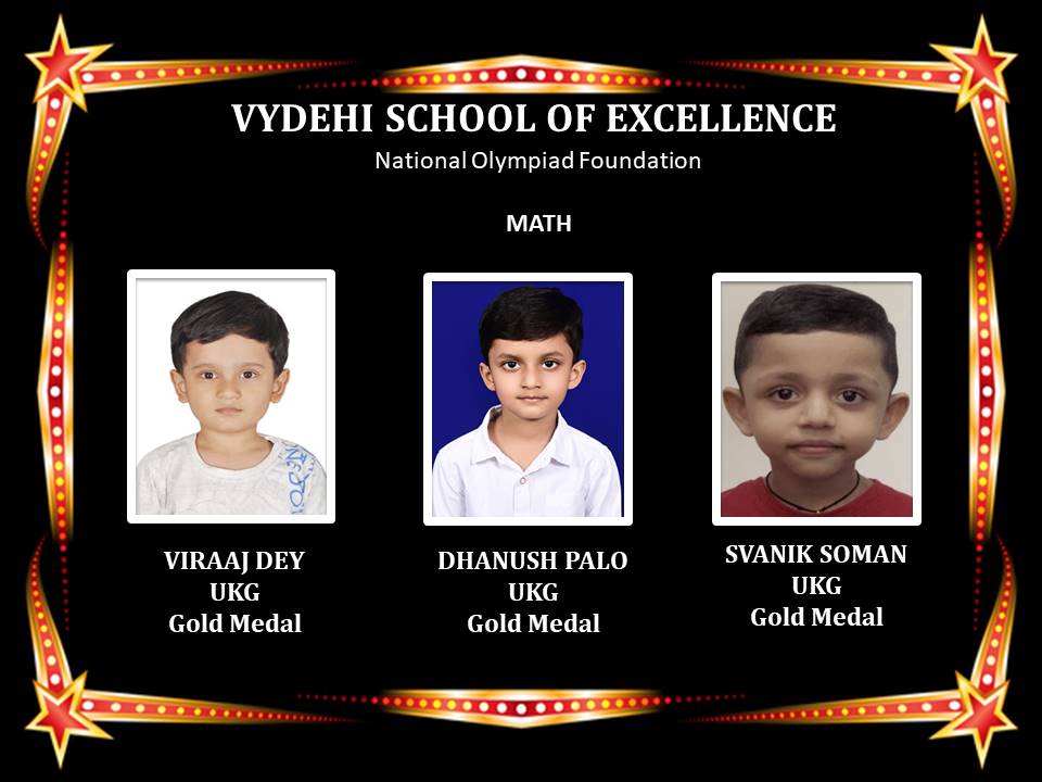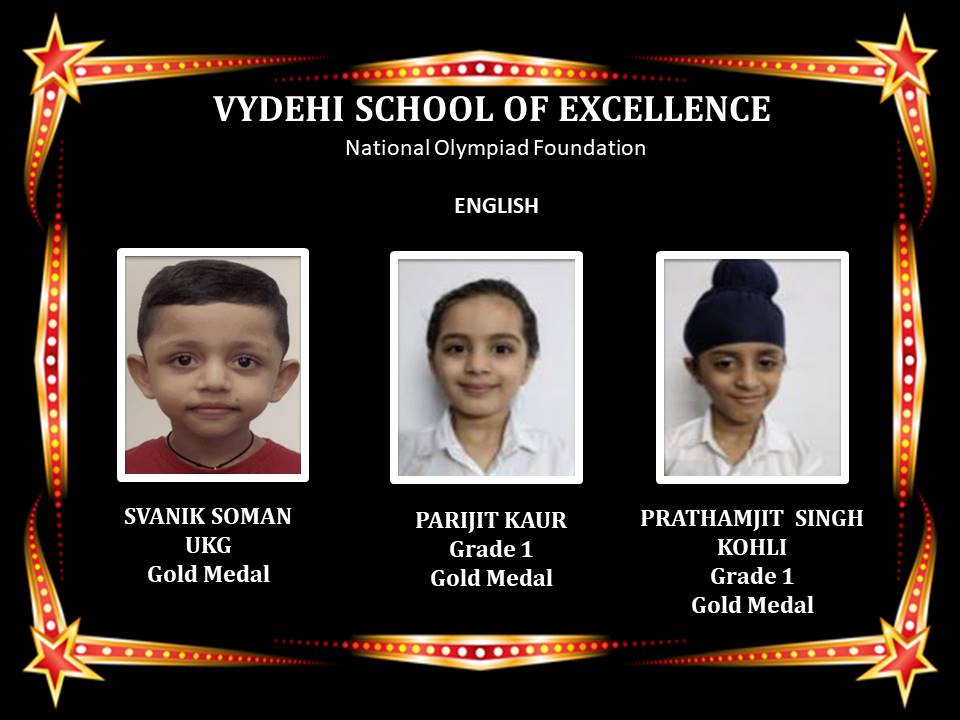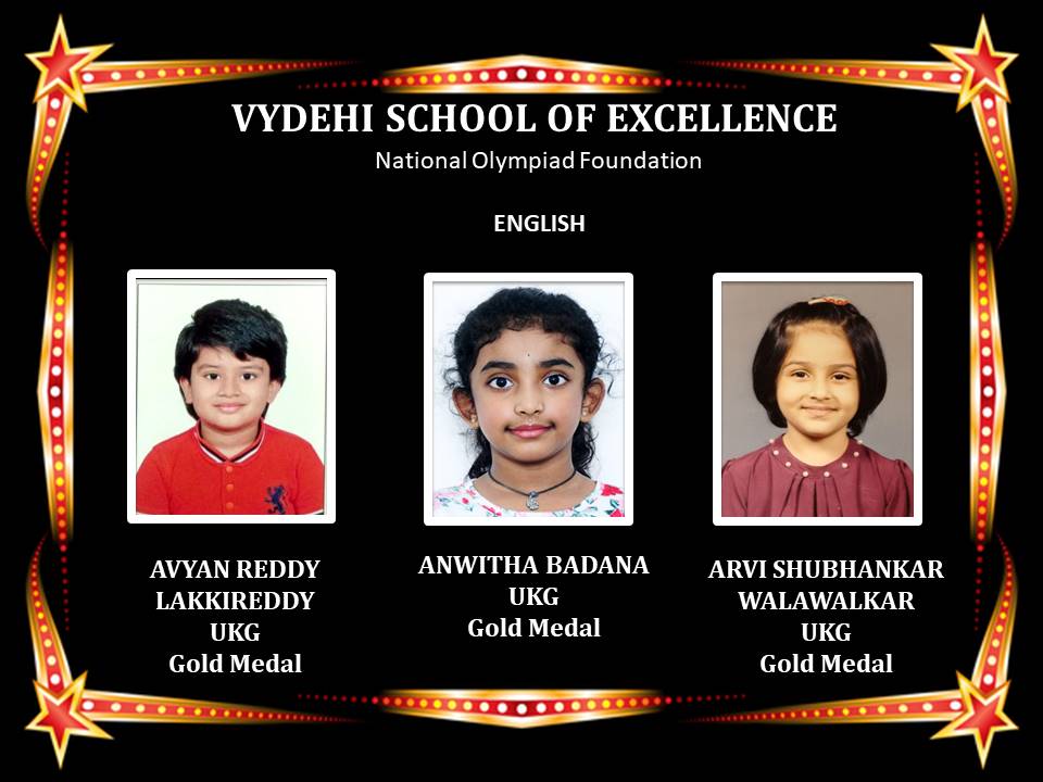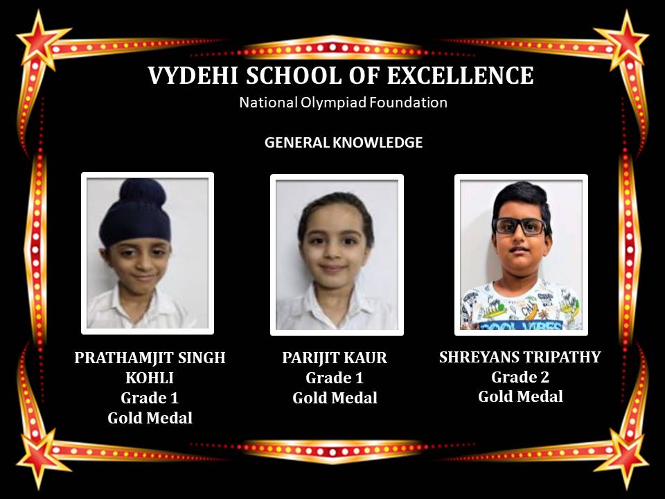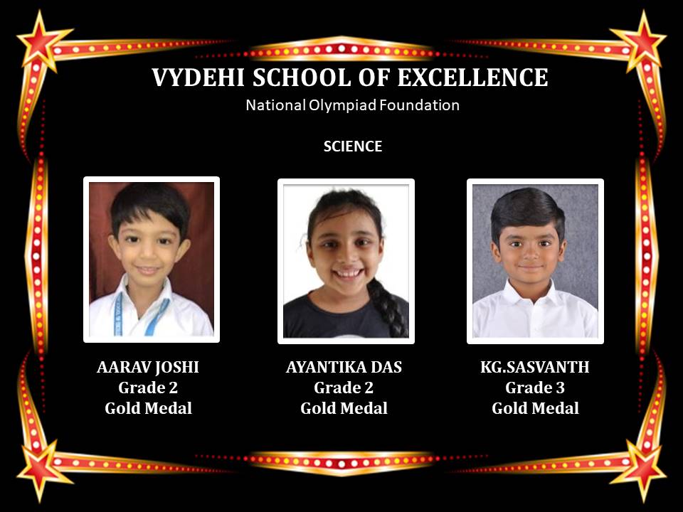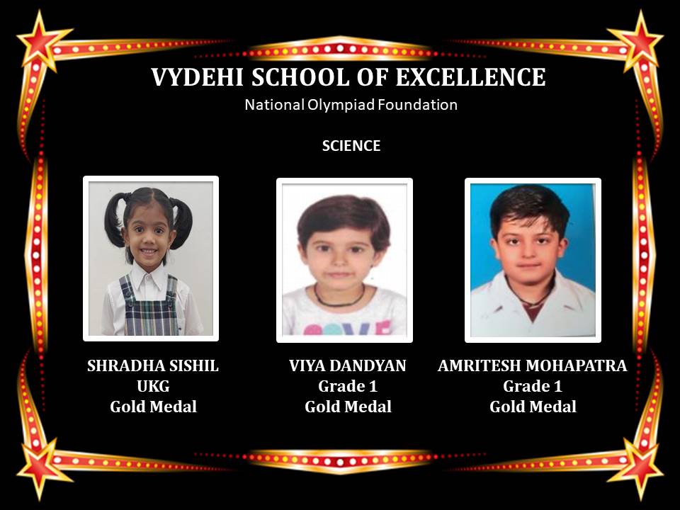 Academic talent and social entrepreneurship helping the talent to come out from the walls of classroom. Vydehi School of Excellence organized various Olympiads conducted by NOF (National Olympiad Foundation) We are happy to announce that our students participated and secured gold medals .Congratulations to all the winners!!