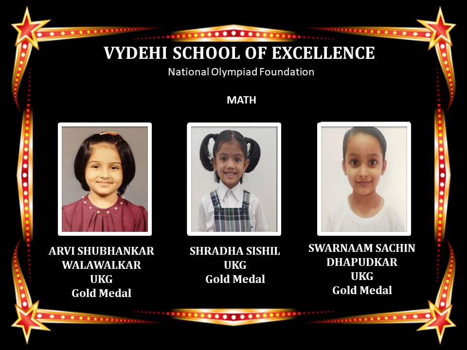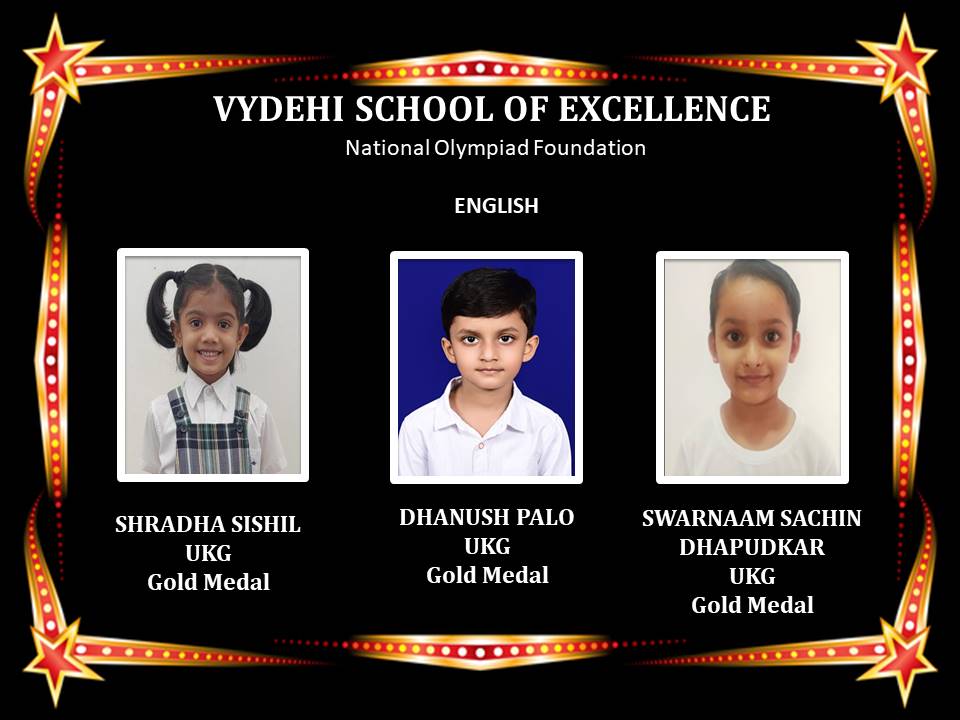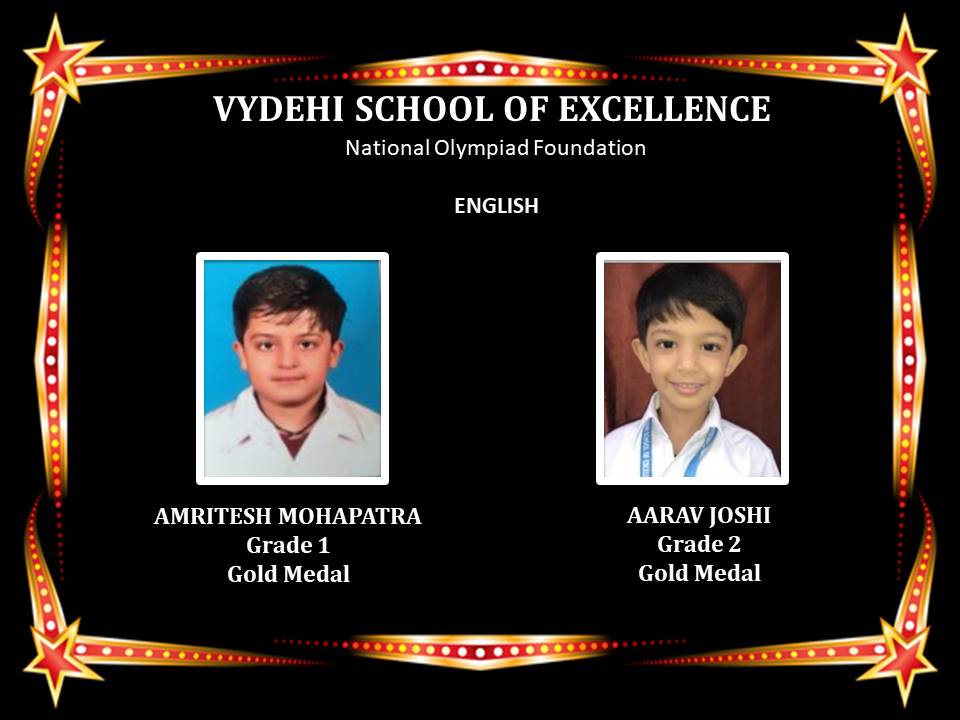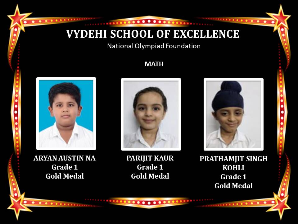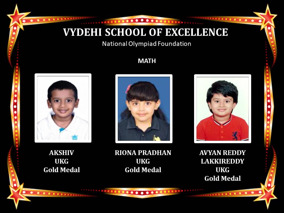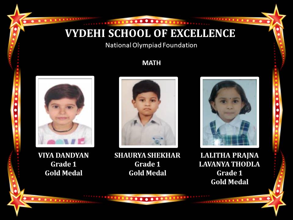 Academic talent and social entrepreneurship helping the talent to come out from the walls of classroom. Vydehi School of Excellence organized various Olympiads conducted by NOF (National Olympiad Foundation) We are happy to announce that our students participated and secured gold medals .Congratulations to all the winners!!