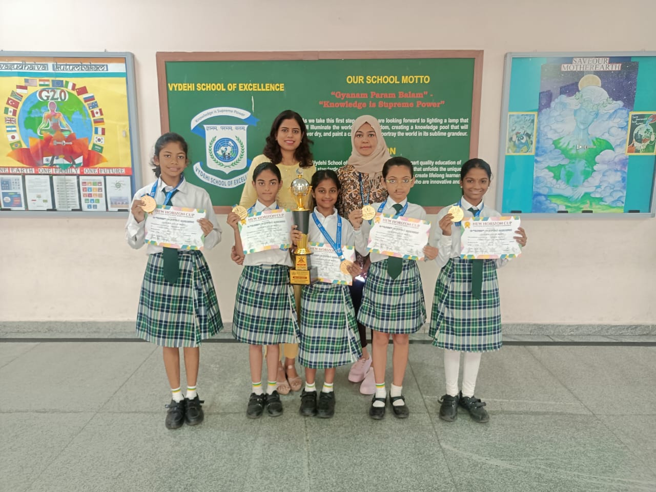 Our students of Vydehi school of Excellence have participated in the New Horizon interschool yoga tournament held on Wednesday, 07th Aug 2024 and performed many difficult asanas with utmost ease, grace and flexibility. Under 12 girls left the audience awestruck and made us all proud by winning the first position and bringing home the NH-2024 cup. 🏆🎉🏆