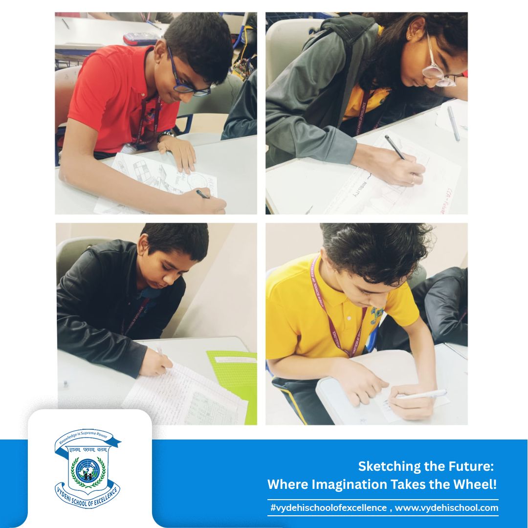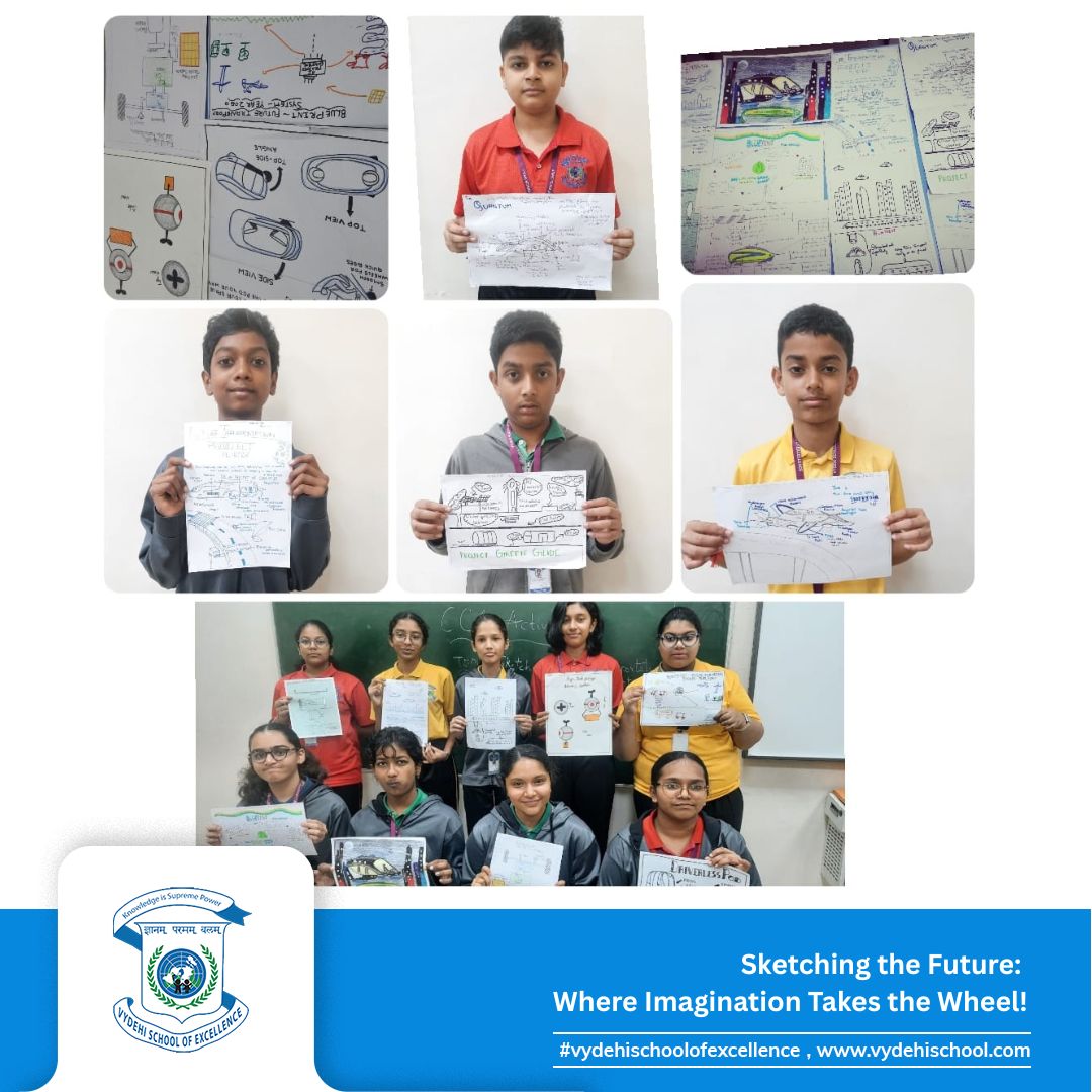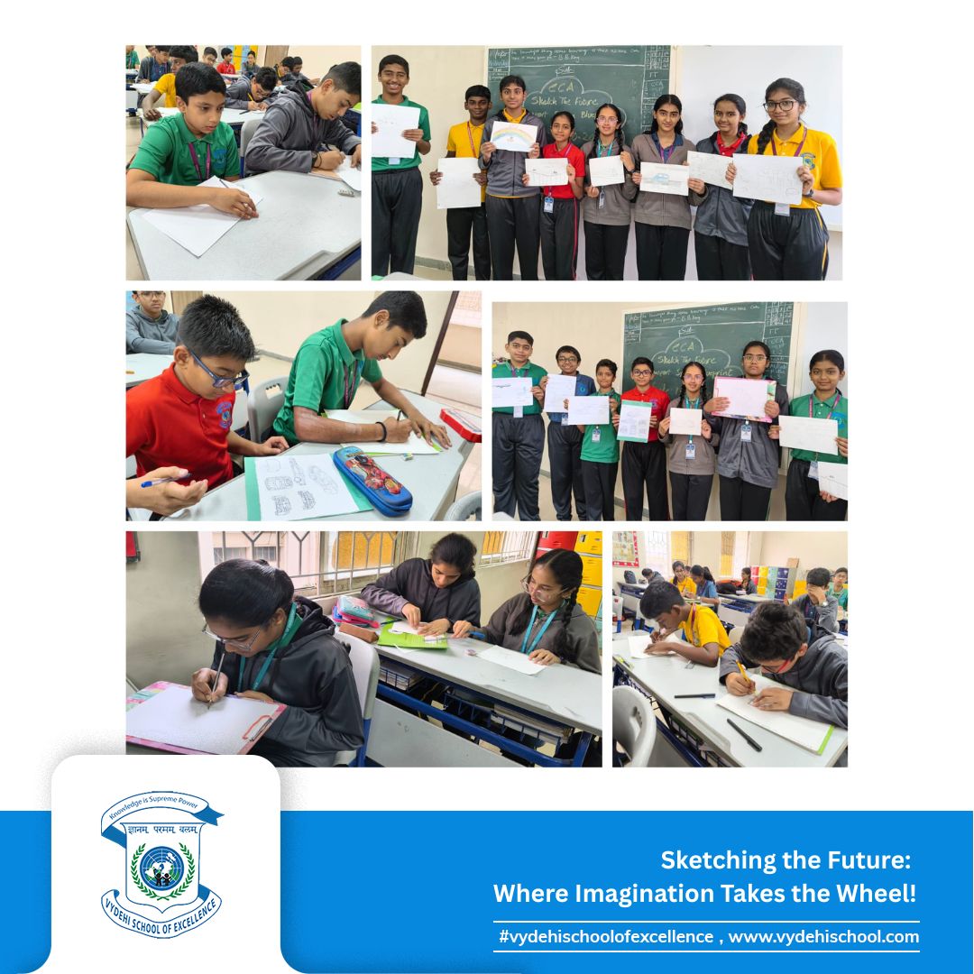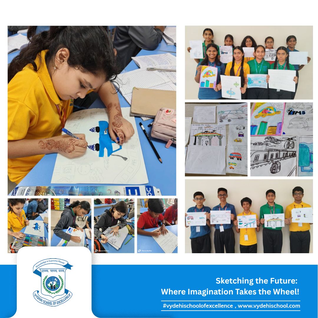 The Grade 8 visionaries of Vydehi School of Excellence took creativity to new heights on 15th October 2025 with the CCA Activity – “Sketch the Future Transportation System Blueprint.” 🎨🚗