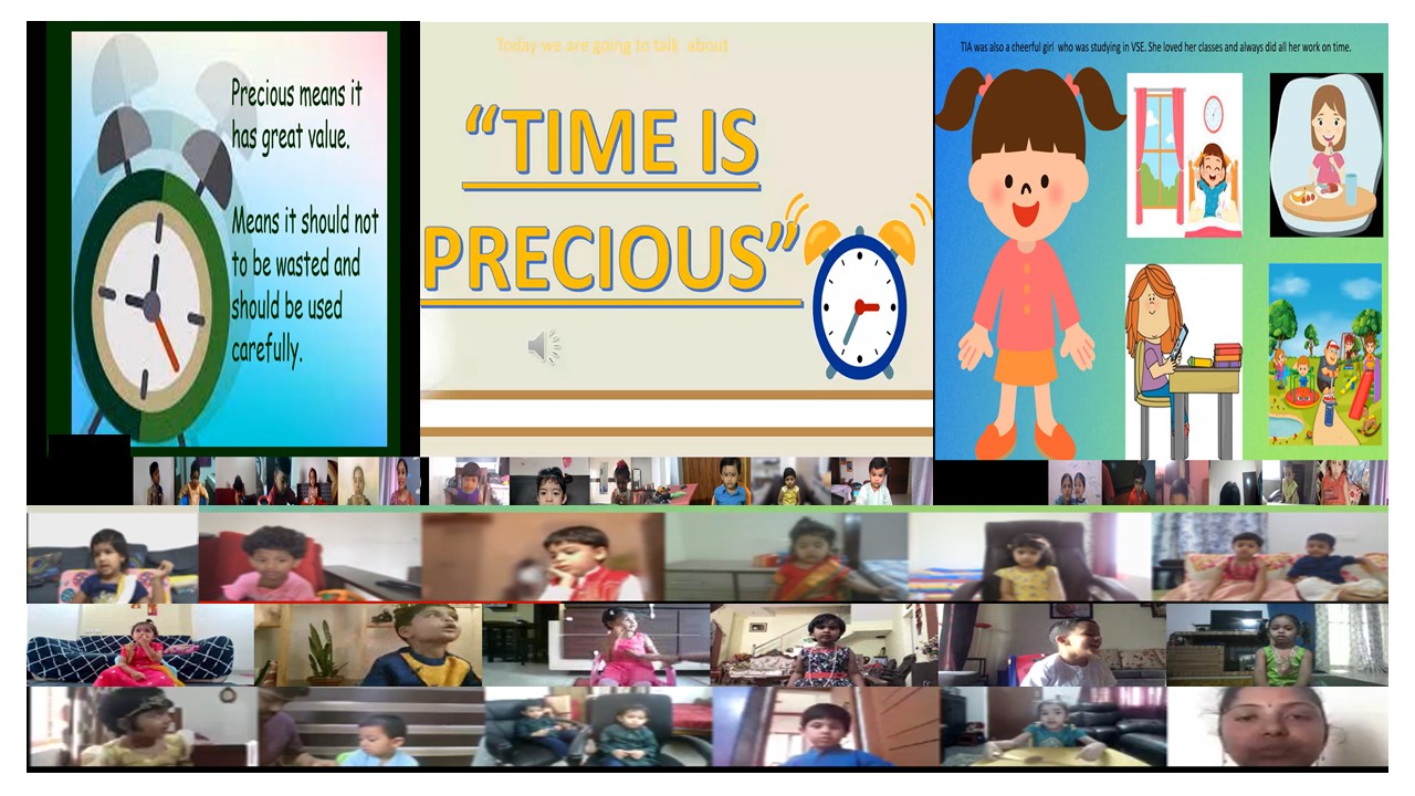 To explain the importance of time VYDEHI SCHOOL OF EXCELLENCE organized ‘TALK THE TALK’ session on the topic “TIME IS PRECIOUS” for Preprimary students on August 18th, 2021. Teachers helped children to understand the value of time through numerous examples.