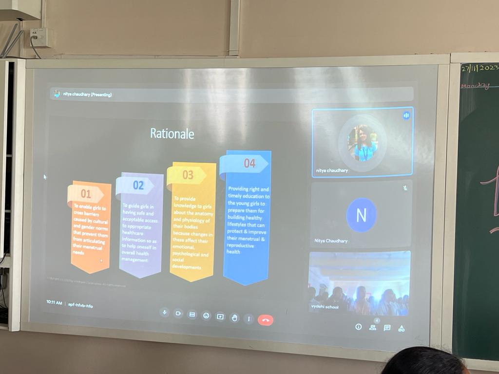 To embrace this change in the lives of students, a two-days online workshop was organized by Vydehi school of Excellence on Monday & Tuesday, 27th & 28th November, 2023 for both boys and girls of grade 6 to 8. The workshop was designed and facilitated by Ms. Nitya Chaudhary for girls & Ms. Roshnee Bhowmick for boys. The spokespersons were from Global Hunt Foundation that creates sustainable solutions.