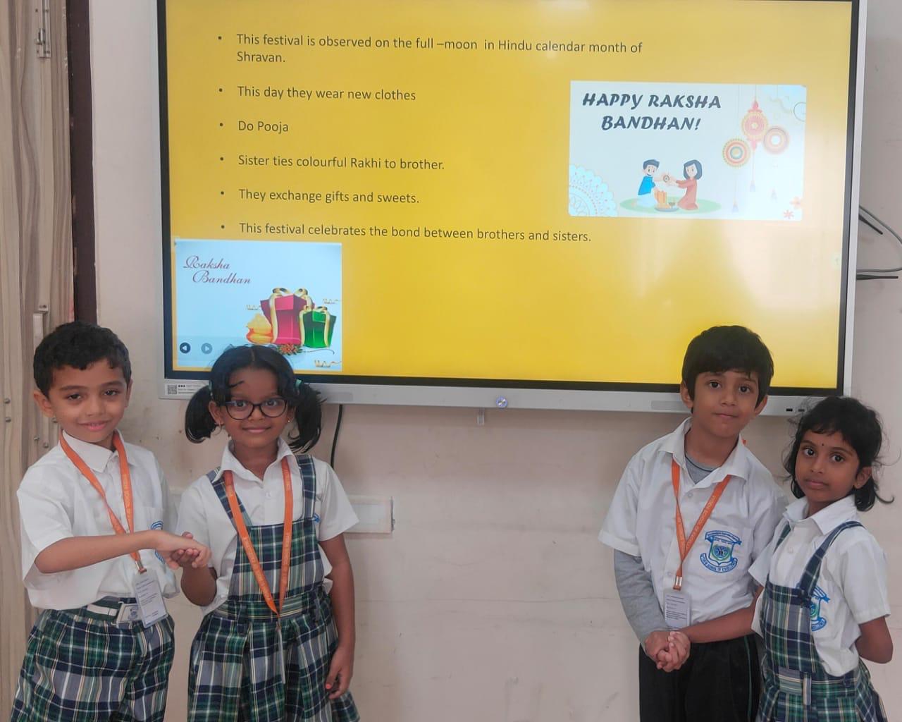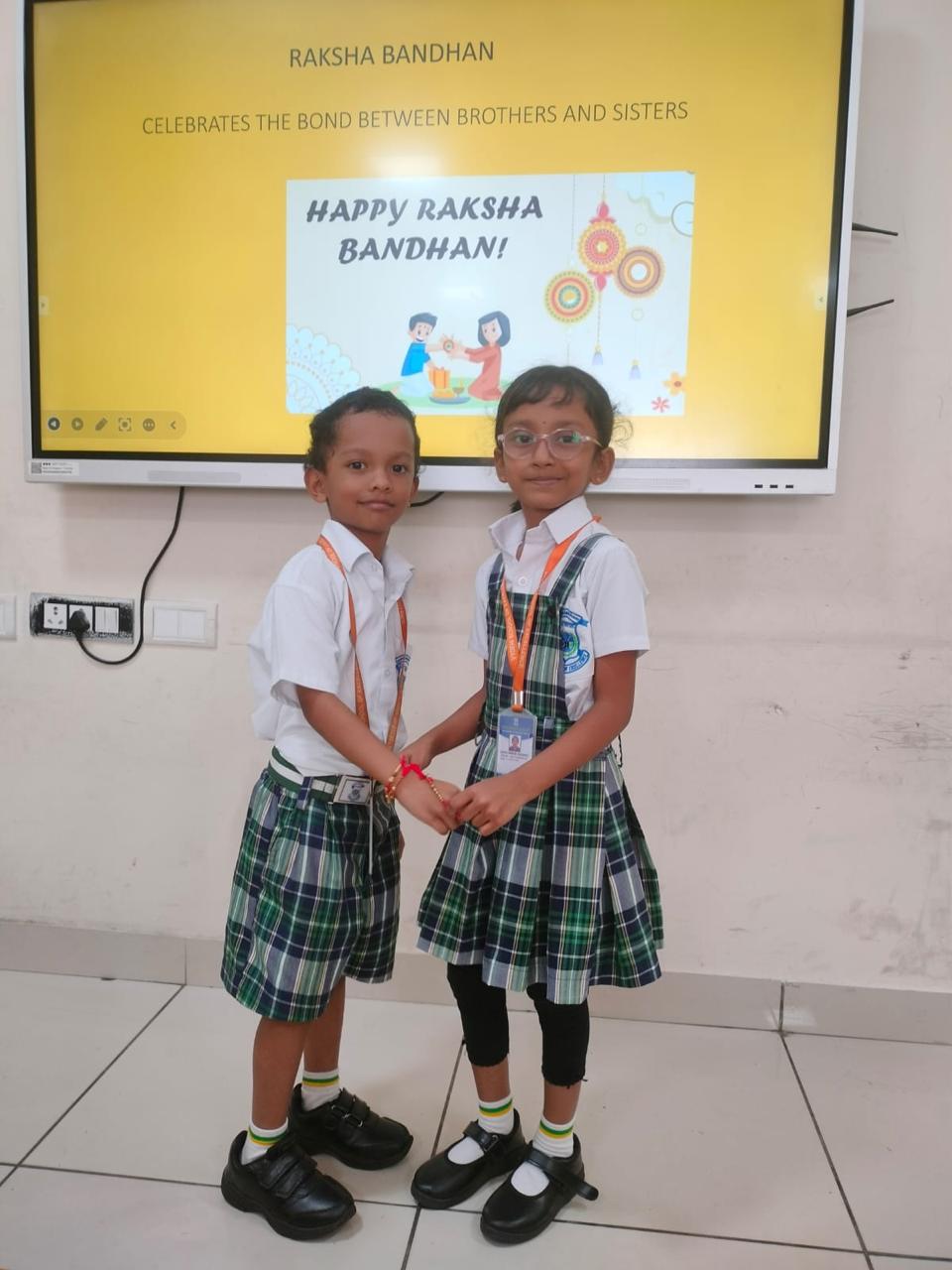 Students embraced this vibrant tradition with enthusiasm and engaged in hands-on activities, where each student crafted a beautiful Rakhi. The significance of this festival that honors the special bond between brothers and sisters was explained by different activities, which highlighted the culture and history of the Raksha Bandhan. Students also shared their personal experiences and stories related to the festival. Through these engaging methods, our school fostered a deeper understanding of this joyous occasion and celebrated the essence of sibling relationships.