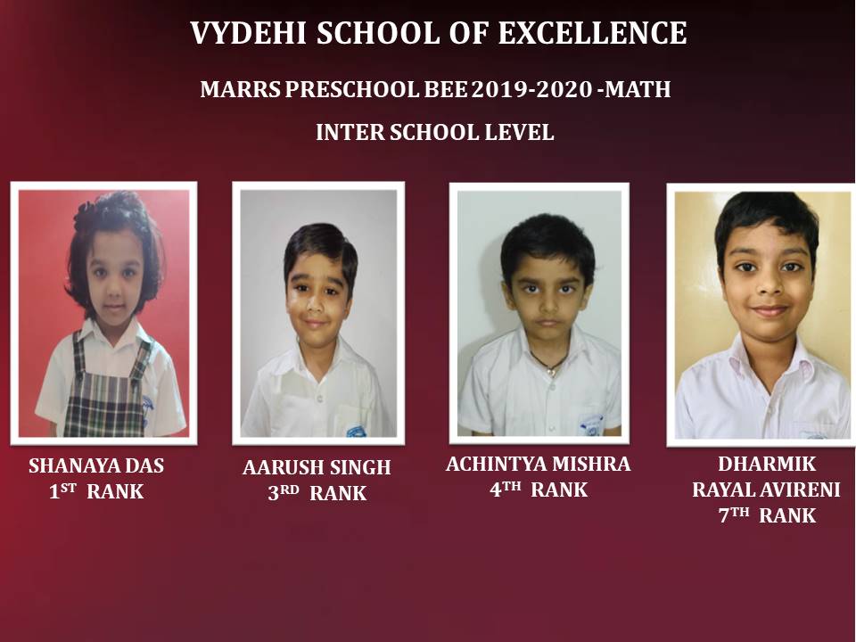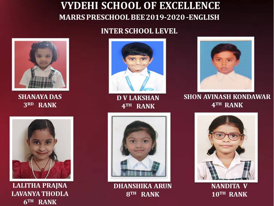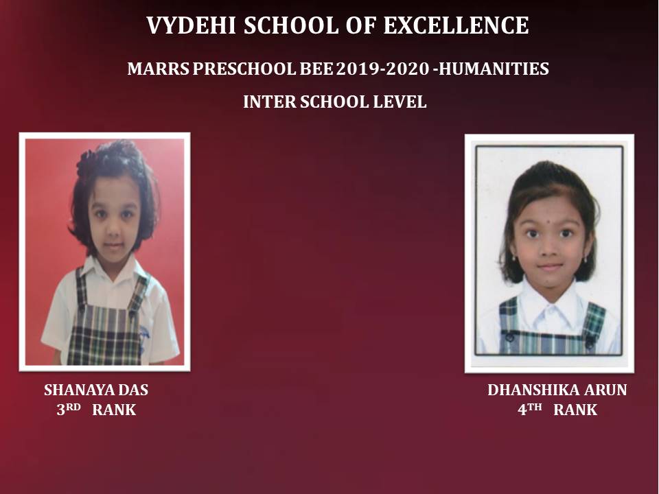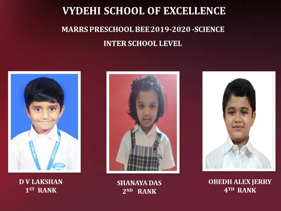 The self-based learning improves retention and results in a systematic and structured understanding of the English language. The healthy competitive spirit motivates the students to learn on their own without any compulsion. In order to initiate students into the world of competitive learning, acting as an invaluable tool for language improvement, also to build self-confidence and helps them to reach their full potential, Vydehi School of Excellence conducted MaRRS Preschool Bee organized by Brain Button 2019-2020, for our students. Congratulations to all our Students who had participated in the Inter School Level of Preschool Bee and qualified for the State Level Championship. All the best to our little champions who had been qualified for their next round.