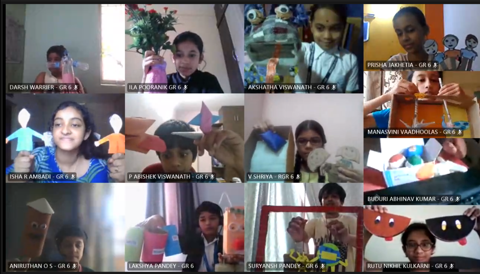 The students of Grade 6 of VYDEHI SCHOOL OF EXCELLENCE eagerly participated and displayed some interesting and noteworthy themes such as, SAVE WATER, HOW TO OVERCOME THIS PANDEMIC, HELP EACH OTHER, STOP USING PLASTIC, etc, by using leftover or used material at home itself. This activity not only promoted them to know the importance of reusing the waste materials to create something unique but also gave them the platform to showcase their talents of oration and narration. Because of this activity, the students had to plan and prepare their presentation, make a story of their own, brushing their creative side and finally presenting individually which enhance their confidence and ability to speak in crowd and gain communication skills.