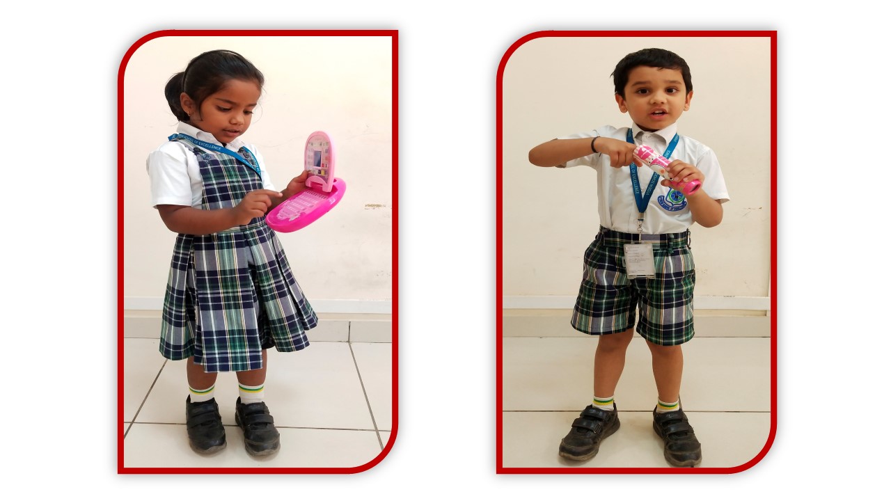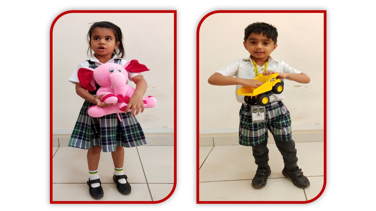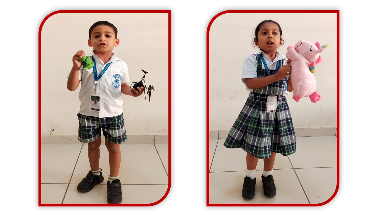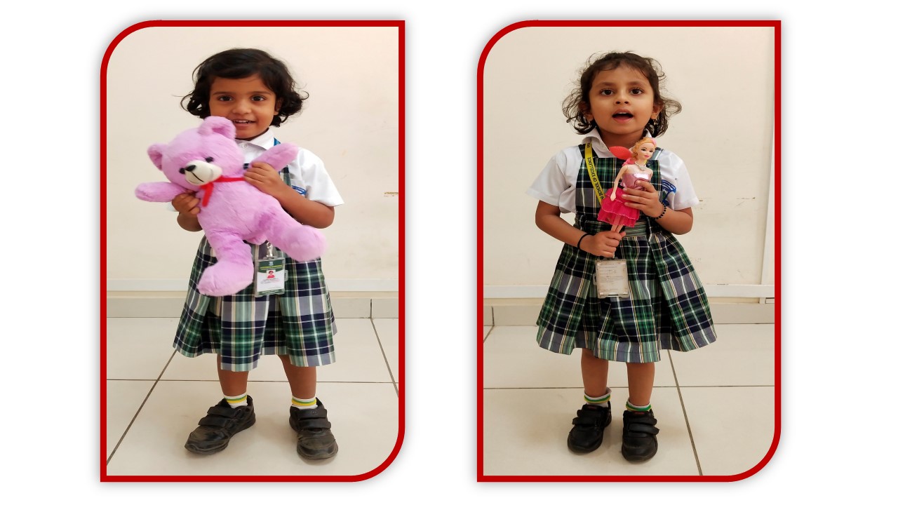 Our tiny tots brought different colourful objects and toys like barbie doll, aeroplane, tractor, favorite animal toys, soft toys etc., Students expressed themselves about their toys with a lot of confidence, facial expressions, and voice modulation.
