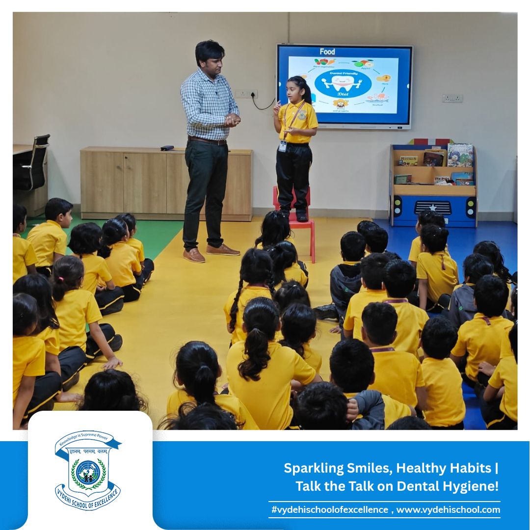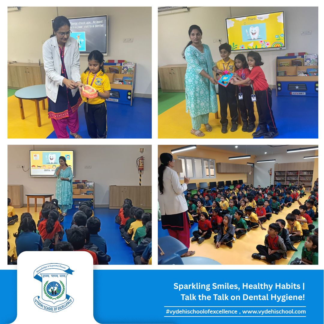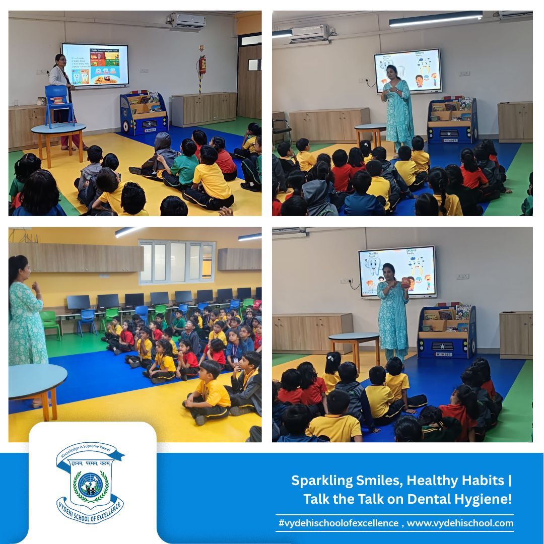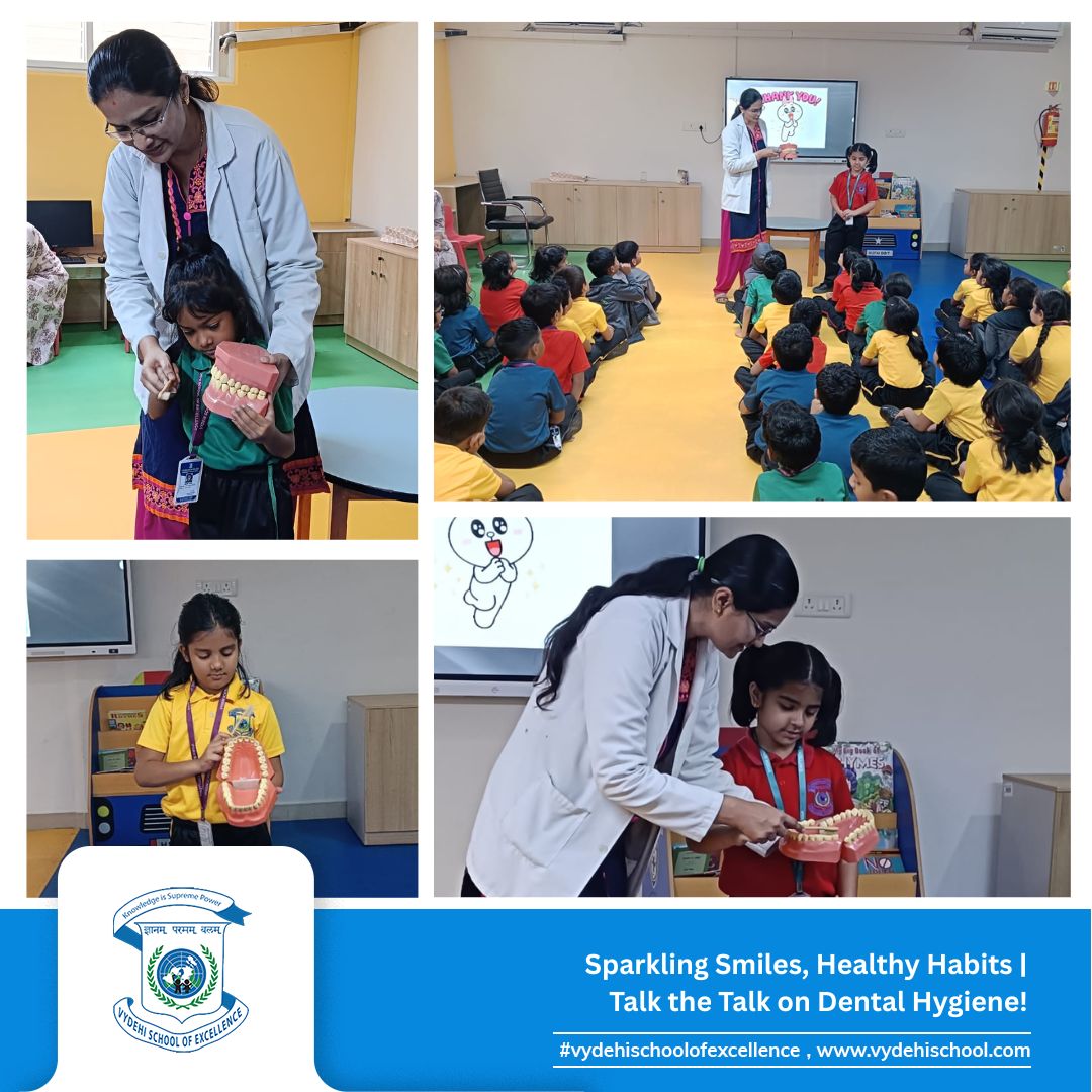 At Vydehi School of Excellence, we believe healthy habits start early! On September 10, 2025, our Pre-Primary and Grade 1 students participated in “Talk the Talk – Dental Hygiene”, an engaging session that highlighted the importance of oral care. 🪥✨