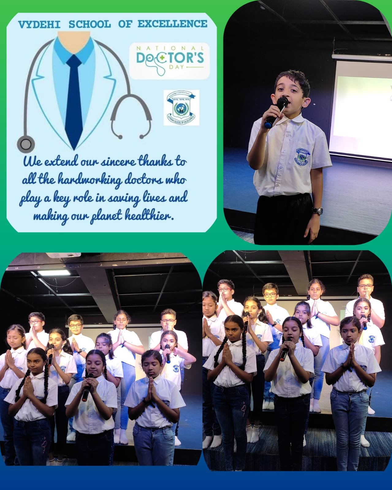 The programme was made a huge success with the help of our Vydehi team, the students and the parents. Through this dedicated assembly we all got an opportunity to share our respect towards the unsung heroes of our lives, THE DOCTORS.