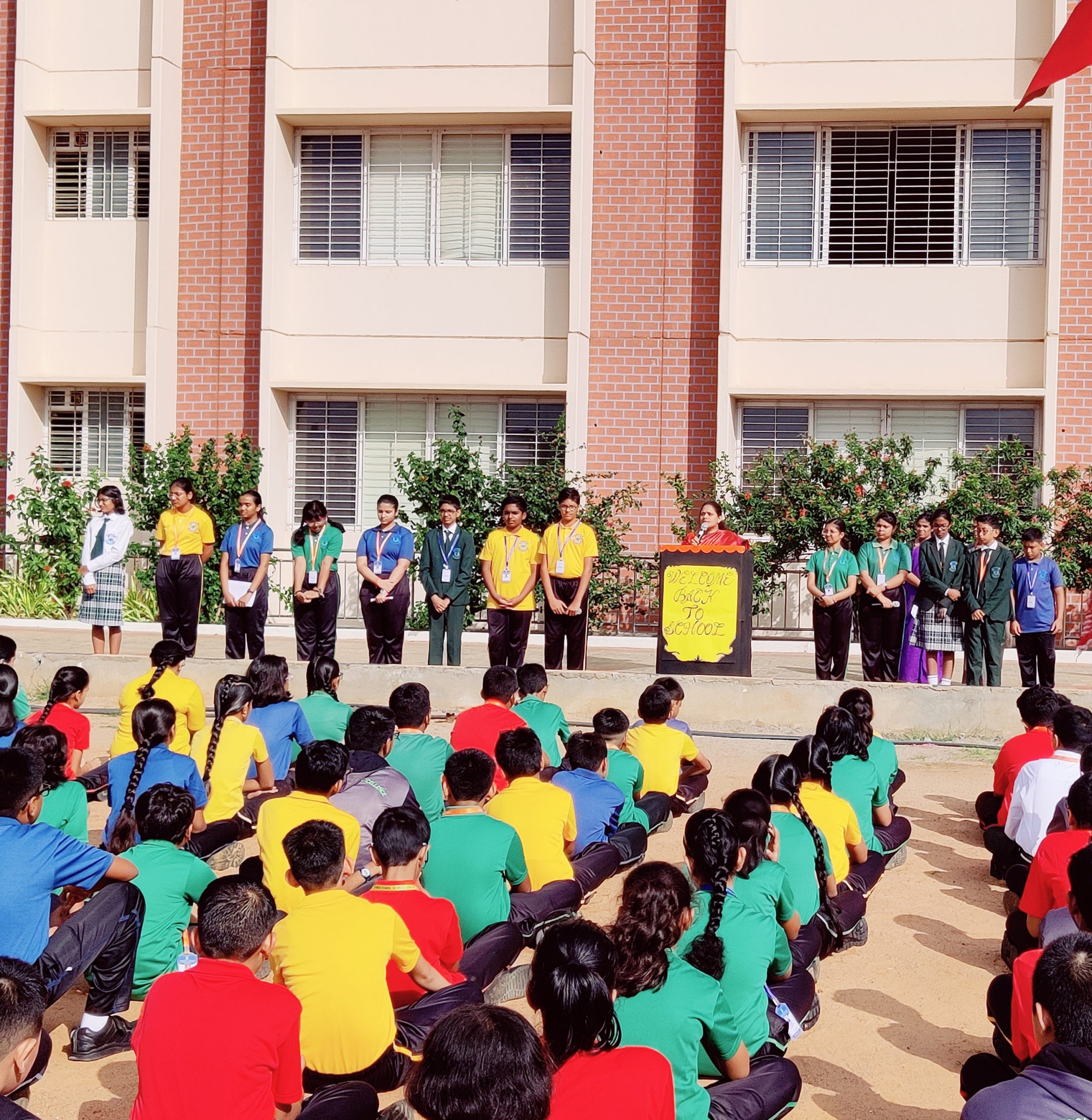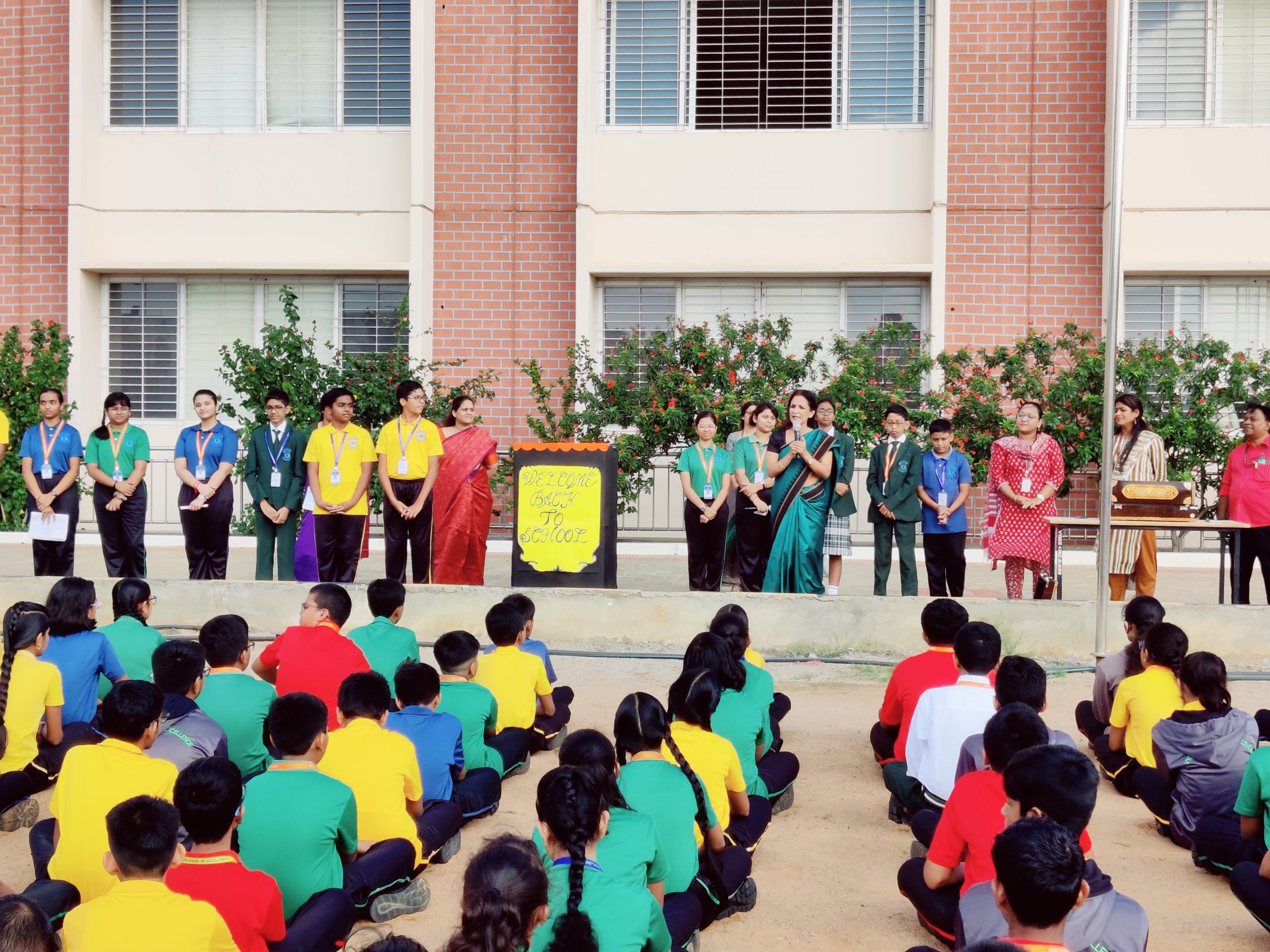 As we usher in a new academic year, Vydehi School of Excellence proudly hosted a special ground assembly for our middle school students on the first day of reopening. Addressed by our esteemed Principal MS. Sinia Sajith and Headmistress middle school Ms.Viritha, the assembly set a positive tone for the exciting year ahead.