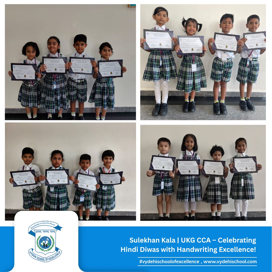 Vydehi School of Excellence proudly celebrated Hindi Diwas by organizing “Sulekhan Kala” – Hindi Handwriting Competition on 9th September 2025 for our UKG students. 🌟