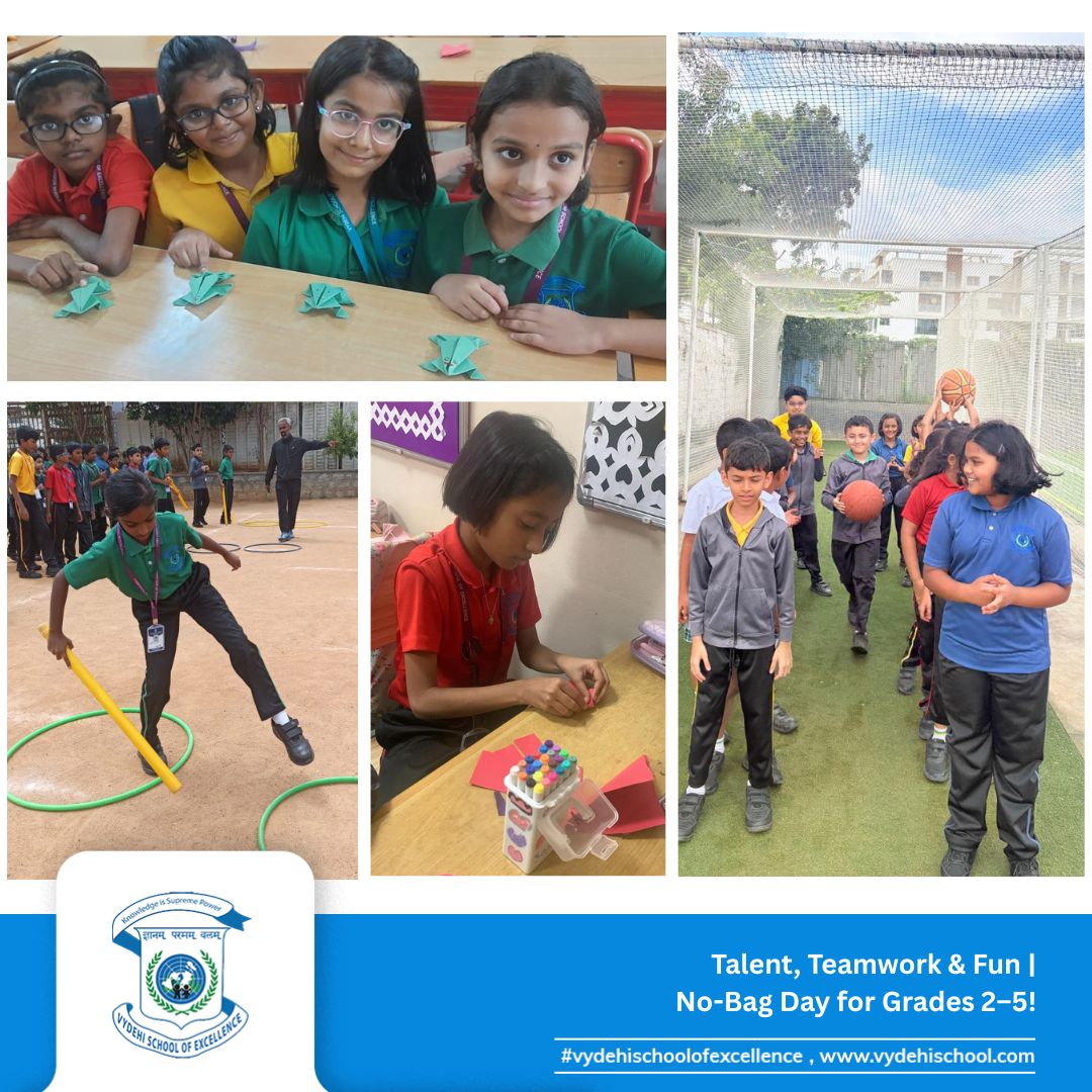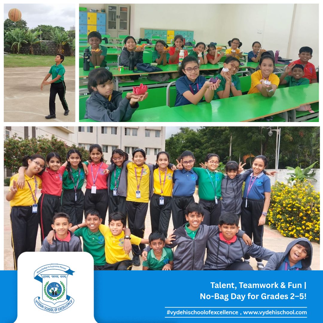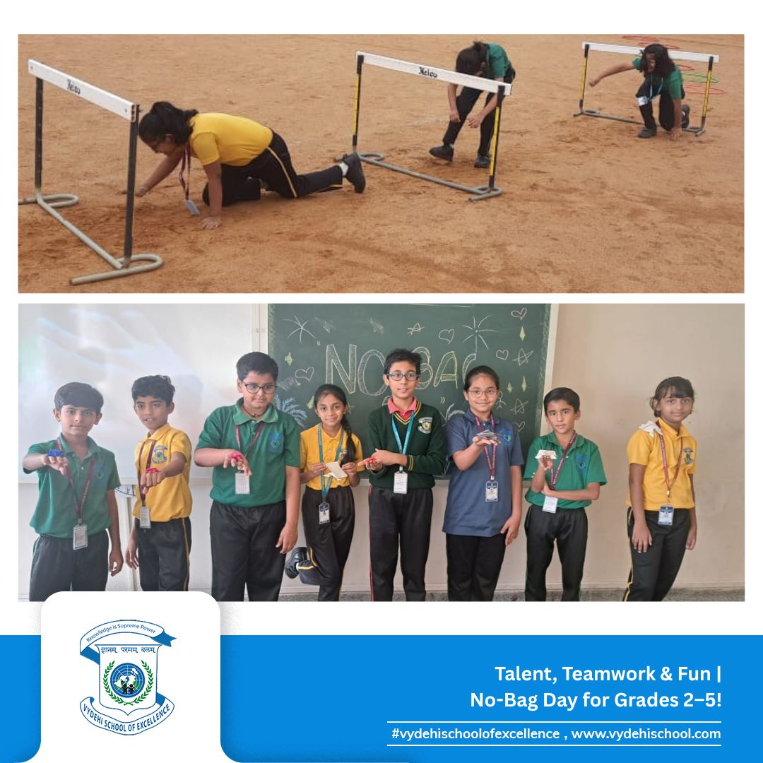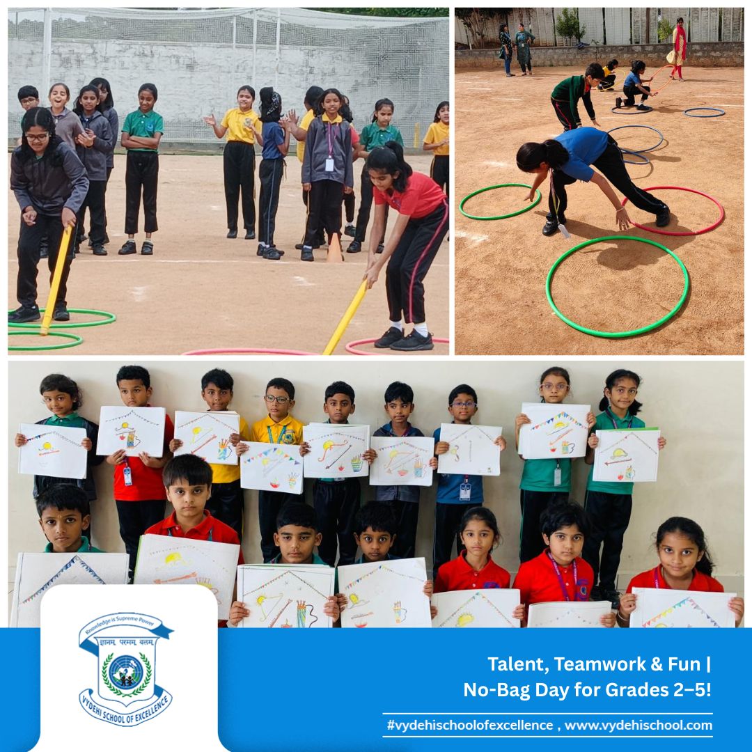 On 26th September 2025, Vydehi School of Excellence buzzed with laughter, energy, and creativity as our Primary students (Grades 2β5) celebrated a fun-filled No-Bag Day. With books set aside, the day became a canvas for exploration, imagination, and hands-on learning. π