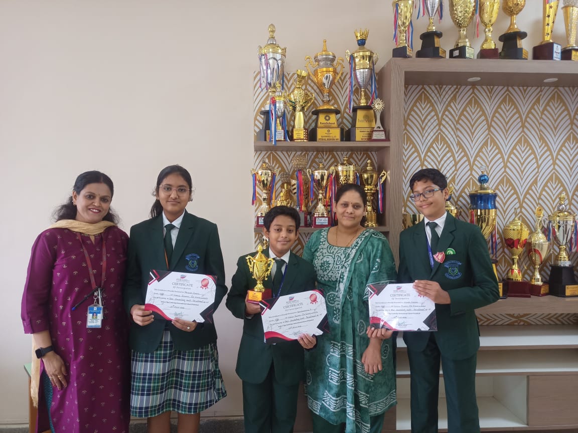 We are immensely proud to announce that our team for the Tech Scavenger Hunt—Prisha Goyal (8D), Nihar Sagar Gadre (8D), and Krishnathej P — demonstrated exceptional skill and teamwork, completing the hunt the fastest and securing first place. Their achievement is a testament to their hard work, knowledge, and dedication.