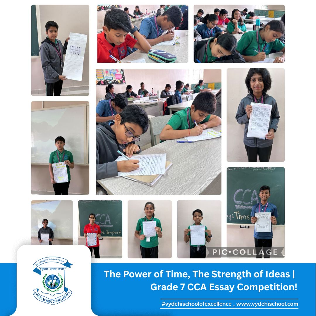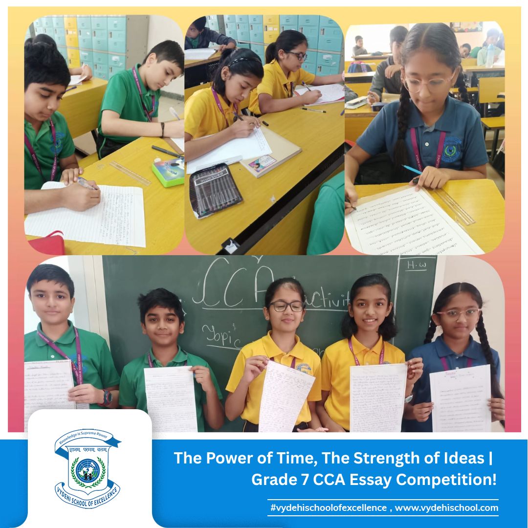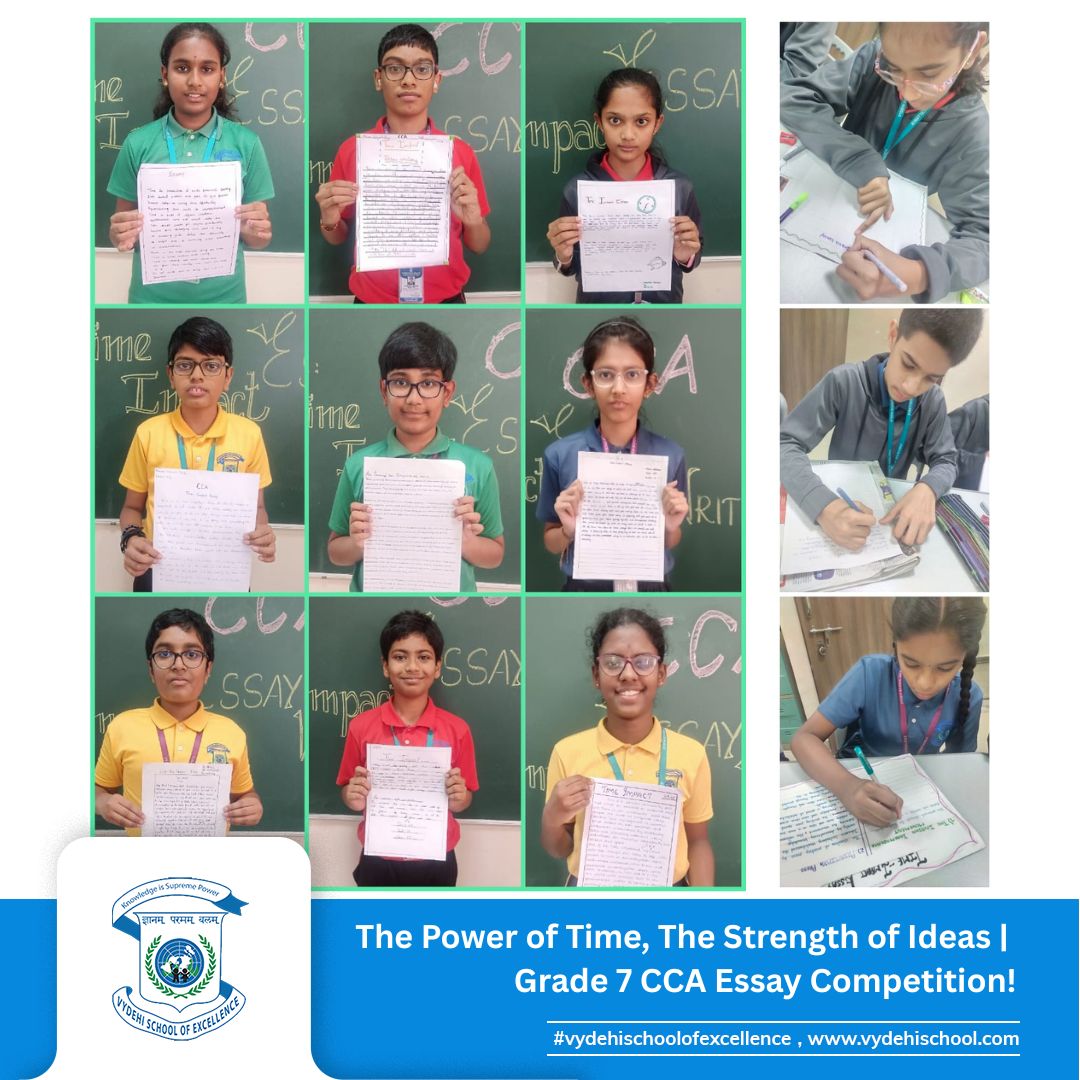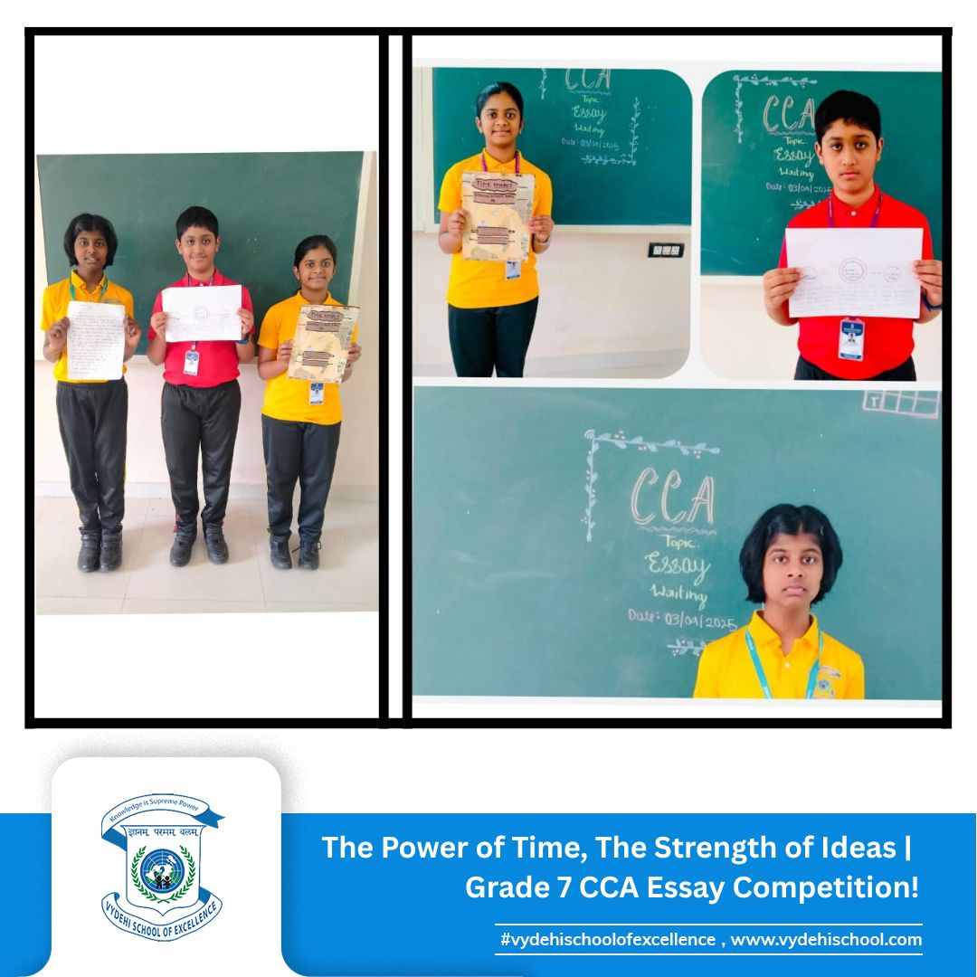 On 3rd September 2025, Vydehi School of Excellence conducted the Grade 7 CCA Essay Writing Competition on the theme โTime-Impact.โ The activity encouraged students to reflect on how historic events and personalities shape our present and influence our future. ๐๐ฎ