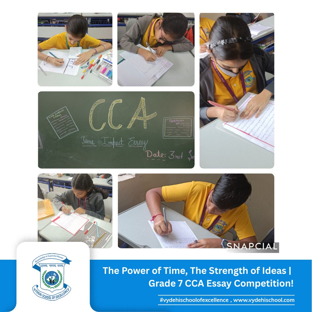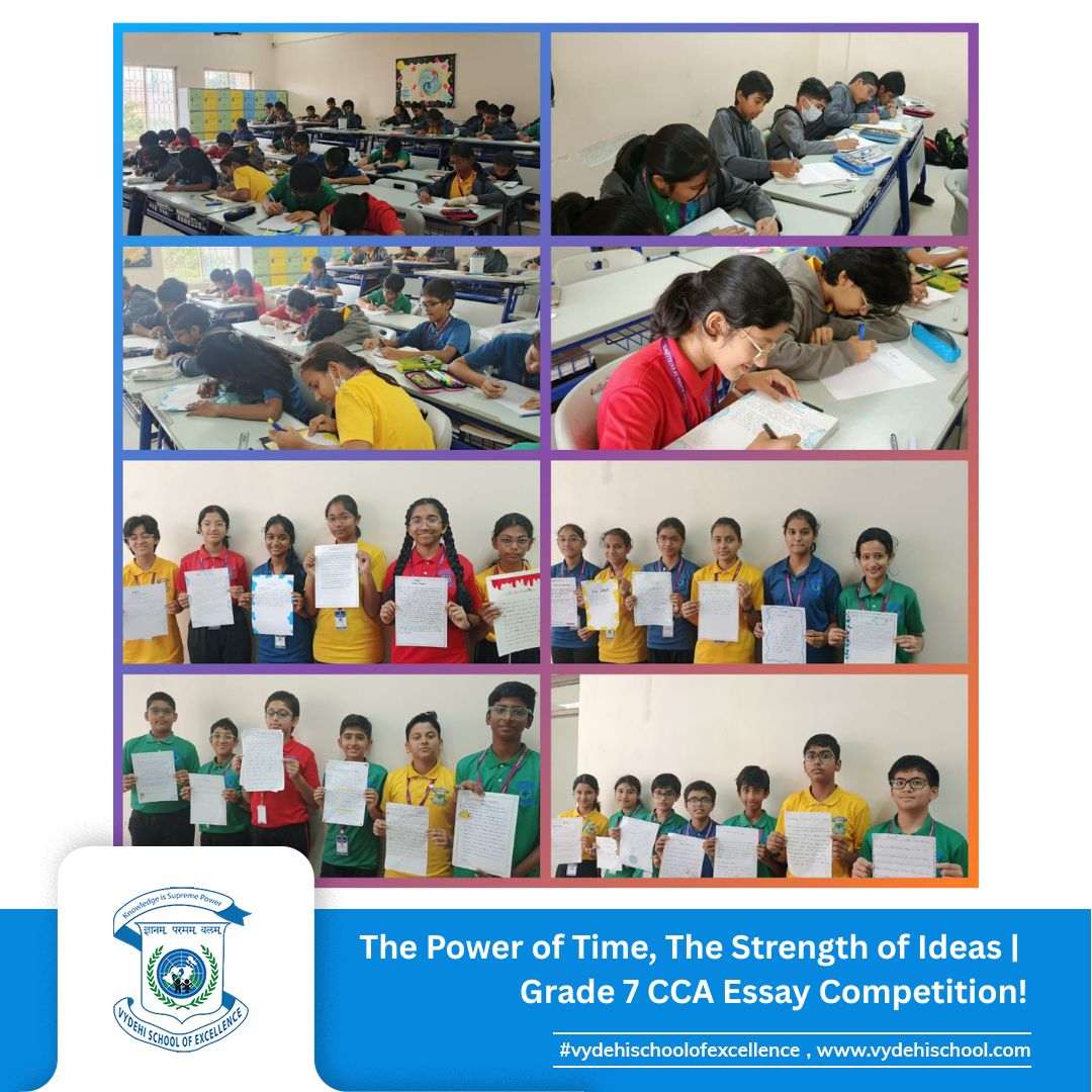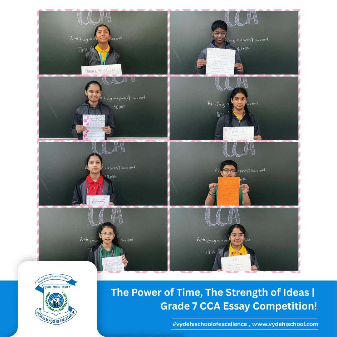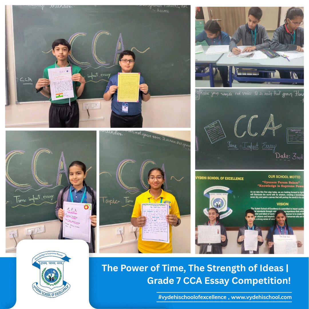 On 3rd September 2025, Vydehi School of Excellence conducted the Grade 7 CCA Essay Writing Competition on the theme โTime-Impact.โ The activity encouraged students to reflect on how historic events and personalities shape our present and influence our future. ๐๐ฎ