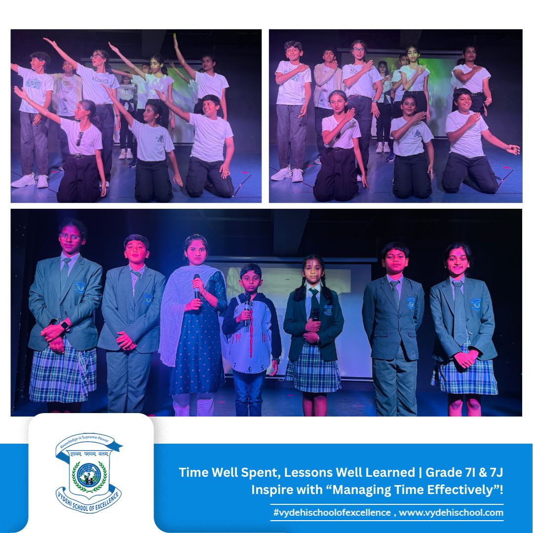 The responsible and dynamic students of Grade 7I & 7J at Vydehi School of Excellence presented a captivating Special Assembly on the theme “Managing Time Effectively: Prioritising Your Tasks and Responsibilities.” ⏰📚