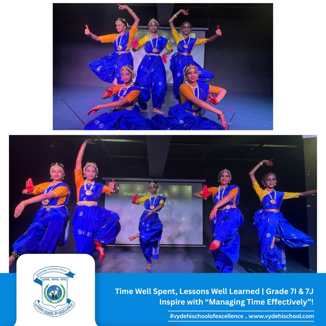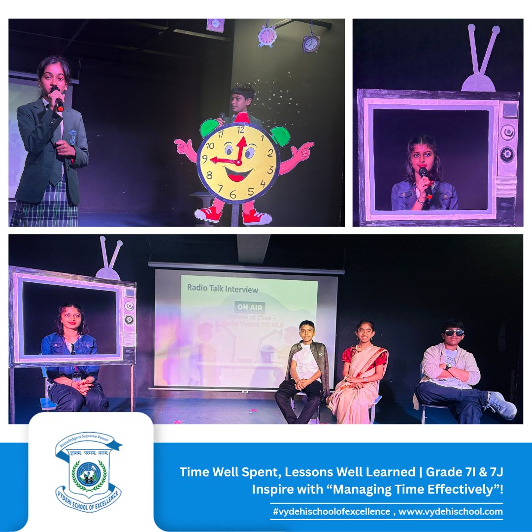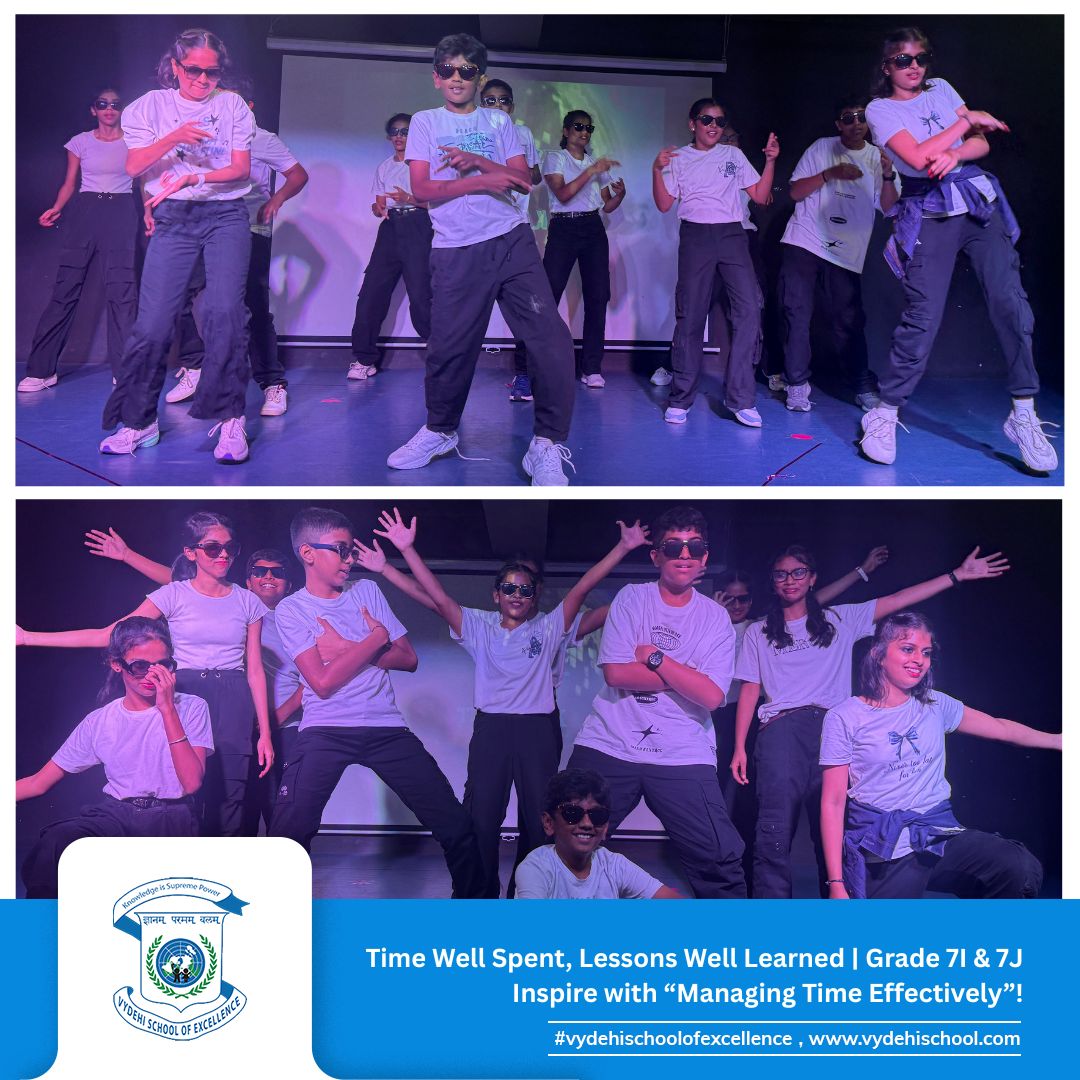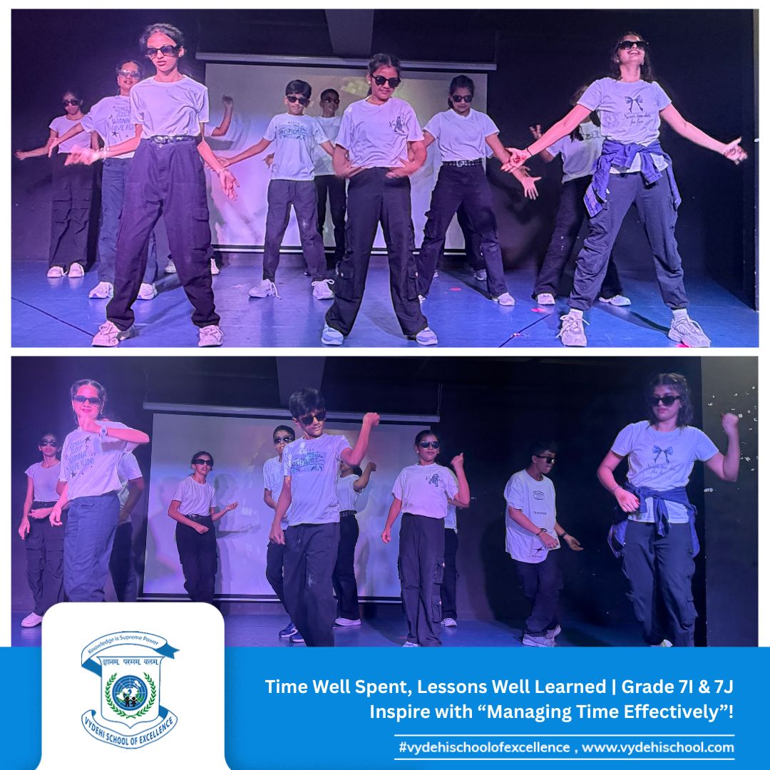 The responsible and dynamic students of Grade 7I & 7J at Vydehi School of Excellence presented a captivating Special Assembly on the theme “Managing Time Effectively: Prioritising Your Tasks and Responsibilities.” ⏰📚