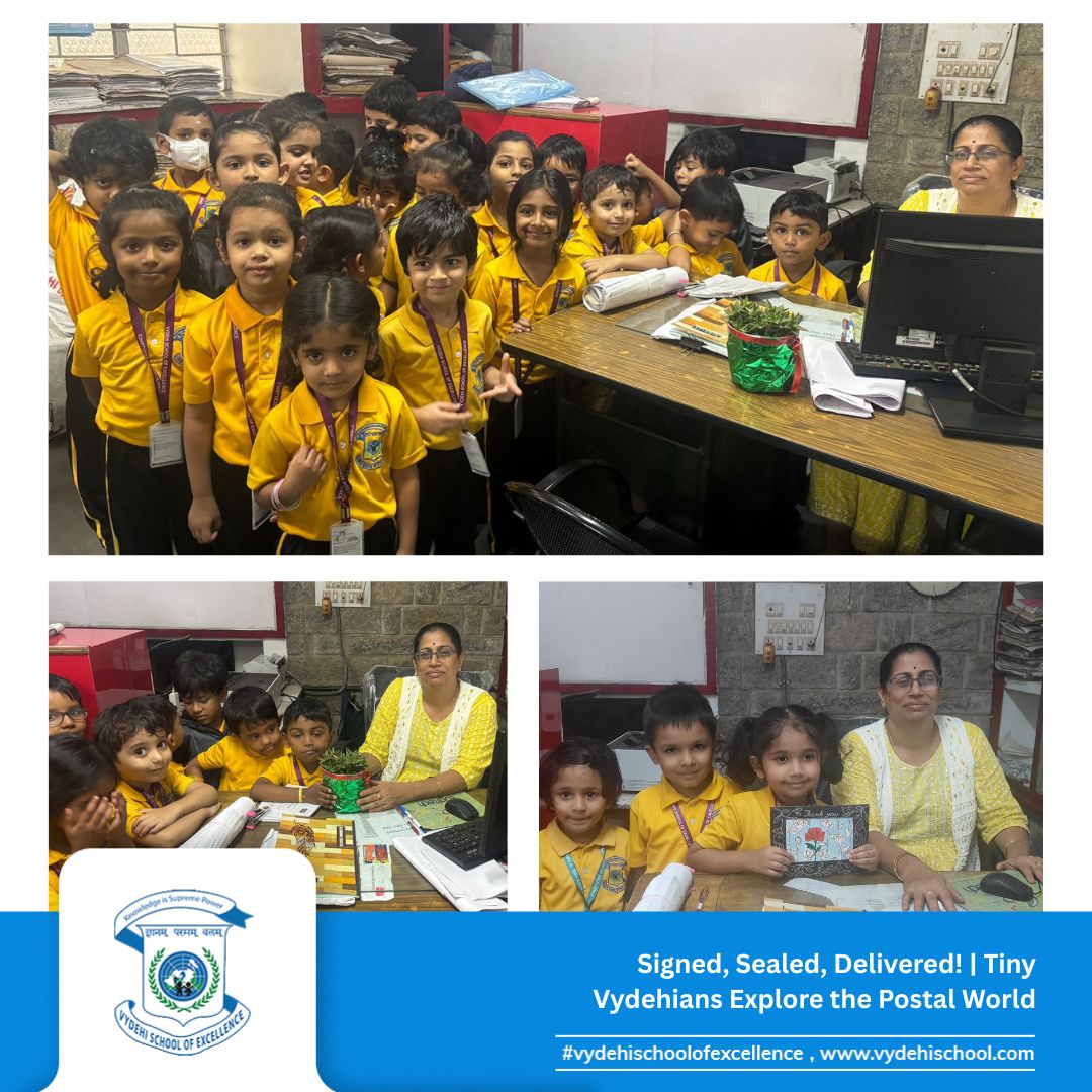 Vydehi School of Excellence recently organised a delightful educational trip to the Post Office for our tiny Vydehians, and what a memorable adventure it was! ๐