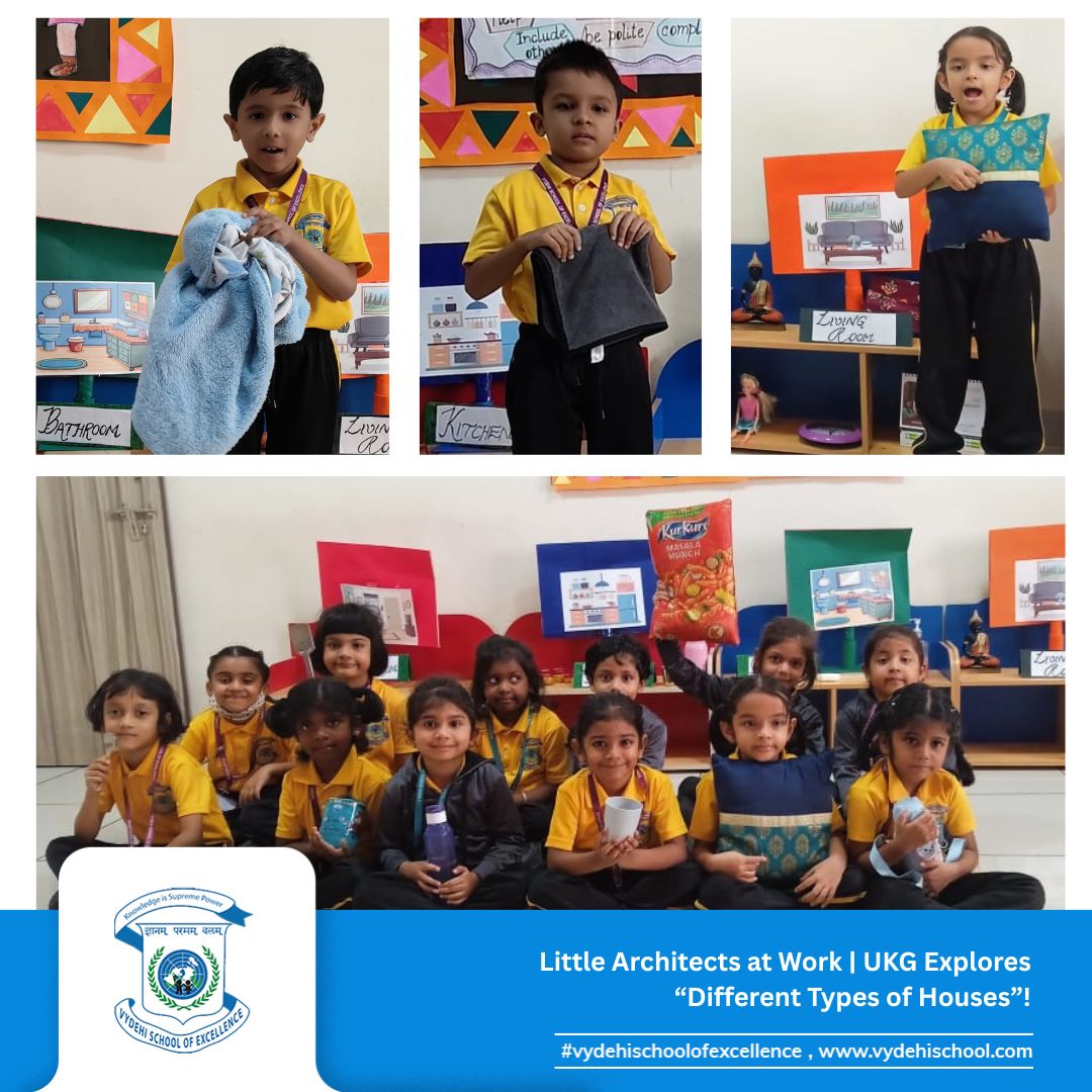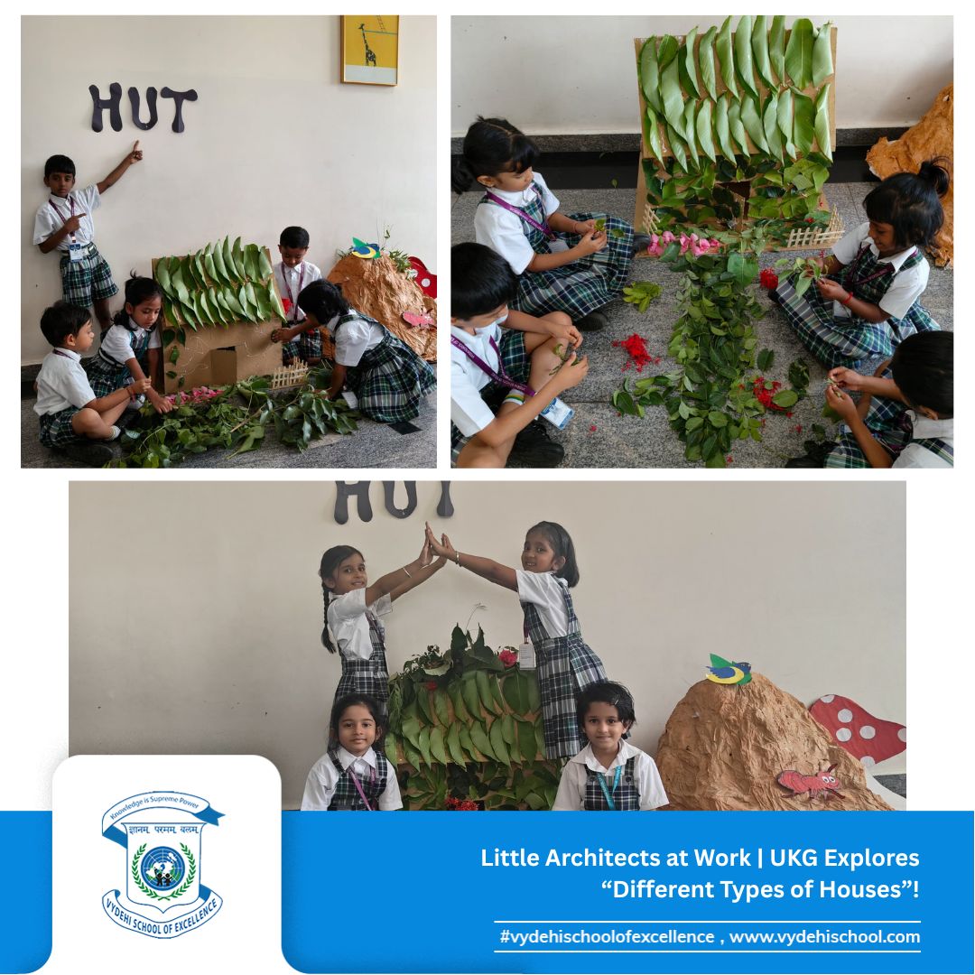 At Vydehi School of Excellence, our curious UKG learners stepped into the world of “Different Types of Houses” through hands-on, fun-filled activities! 🌟