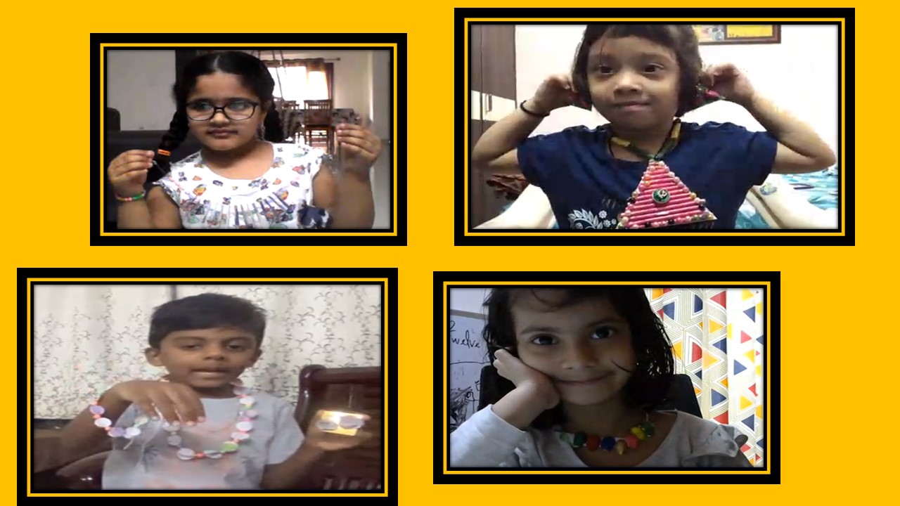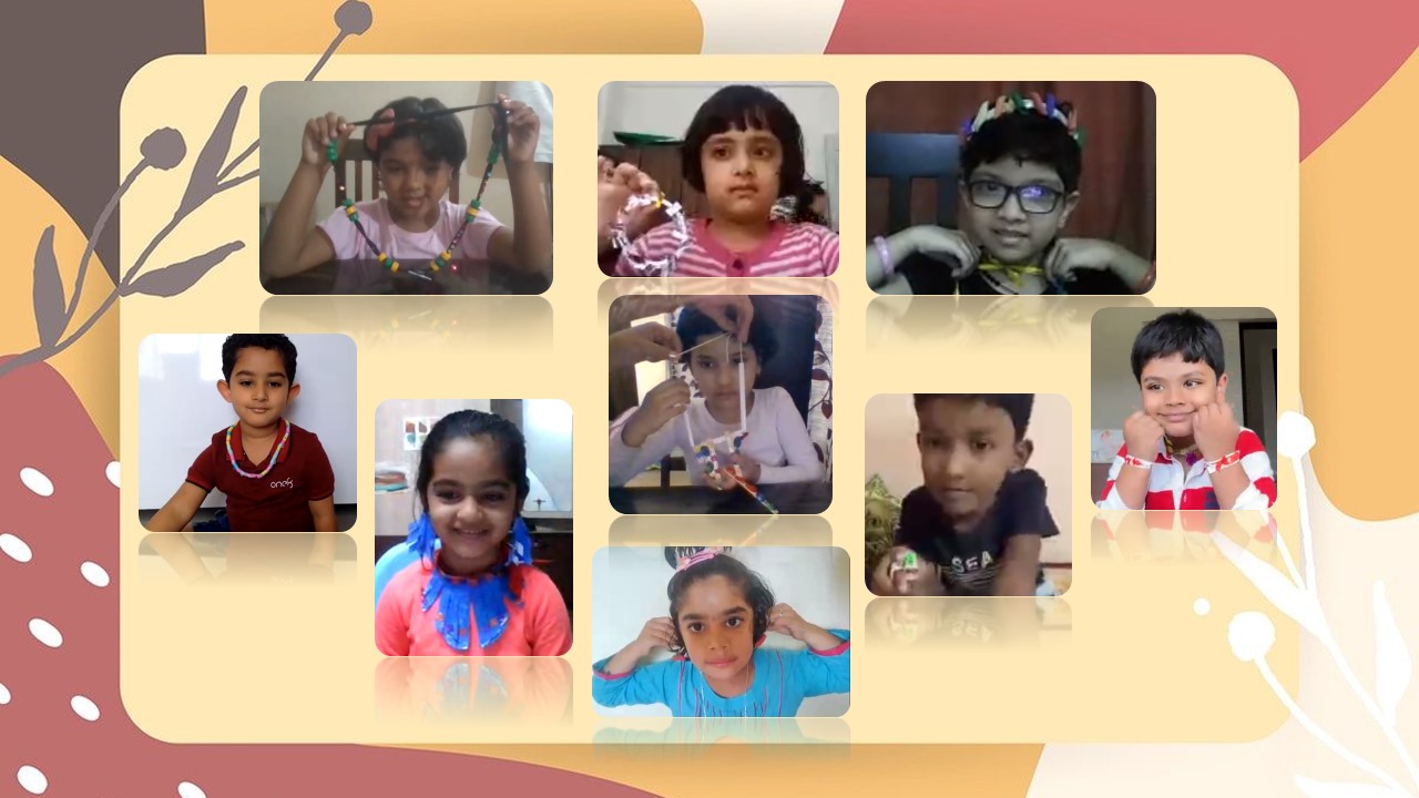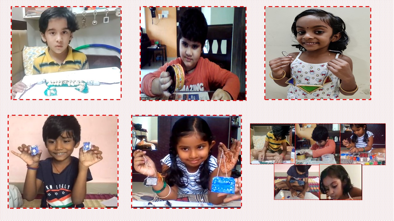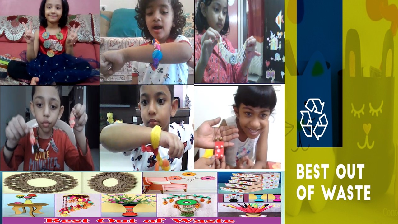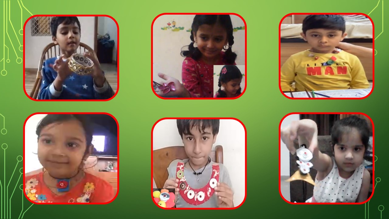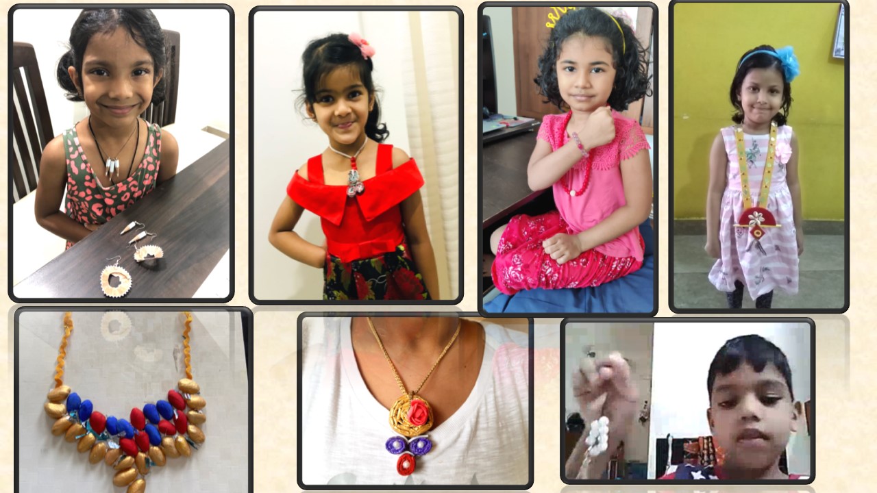 Vydehi School of Excellence conducted a Jewellery Making competition for UKG Students on November 20th 2021, on the topic “BEST OUT OF WASTE” under the CCA Programme. It was amazing to see tiny fingers at work, making some artistic jewellery who participated with full enthusiasm. The children displayed their skills in creating wonderful jewellery from earrings to bangle to necklace and pretty hair bands with the waste materials found in and around the home.