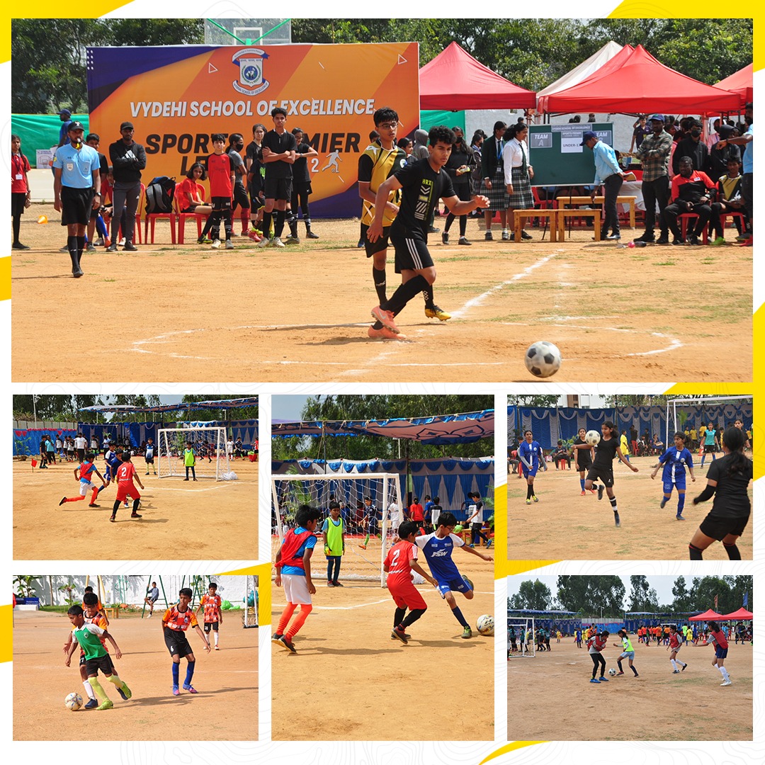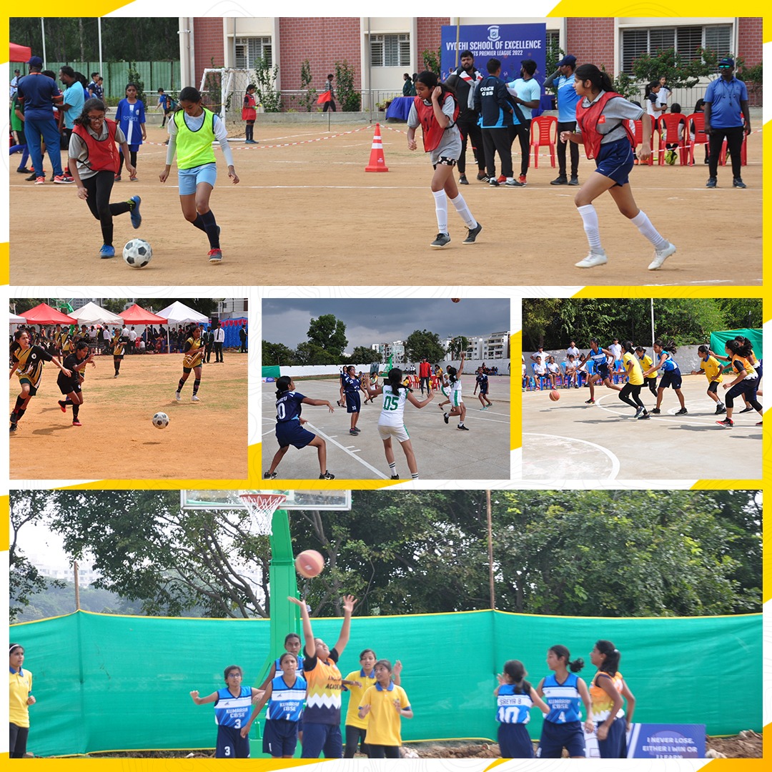 For fulfilling this mission, Vydehi School of Excellence has taken an initiative to engage students of different ages in different sports activities by organizing VSE INTER SCHOOL SPORTS PREMIER LEAGUE – 2022 on 10th & 11th November, 2022. The two days Interschool Football & Basketball Tournament had involved many students from 40 schools all over Bengaluru. There were number of matches held under different categories for the participants. All the winning participants were encouraged with medals, mementos, trophies & certificates. This huge number of student involvement seems that this sport event has drawn a tremendous response from students of all these schools.