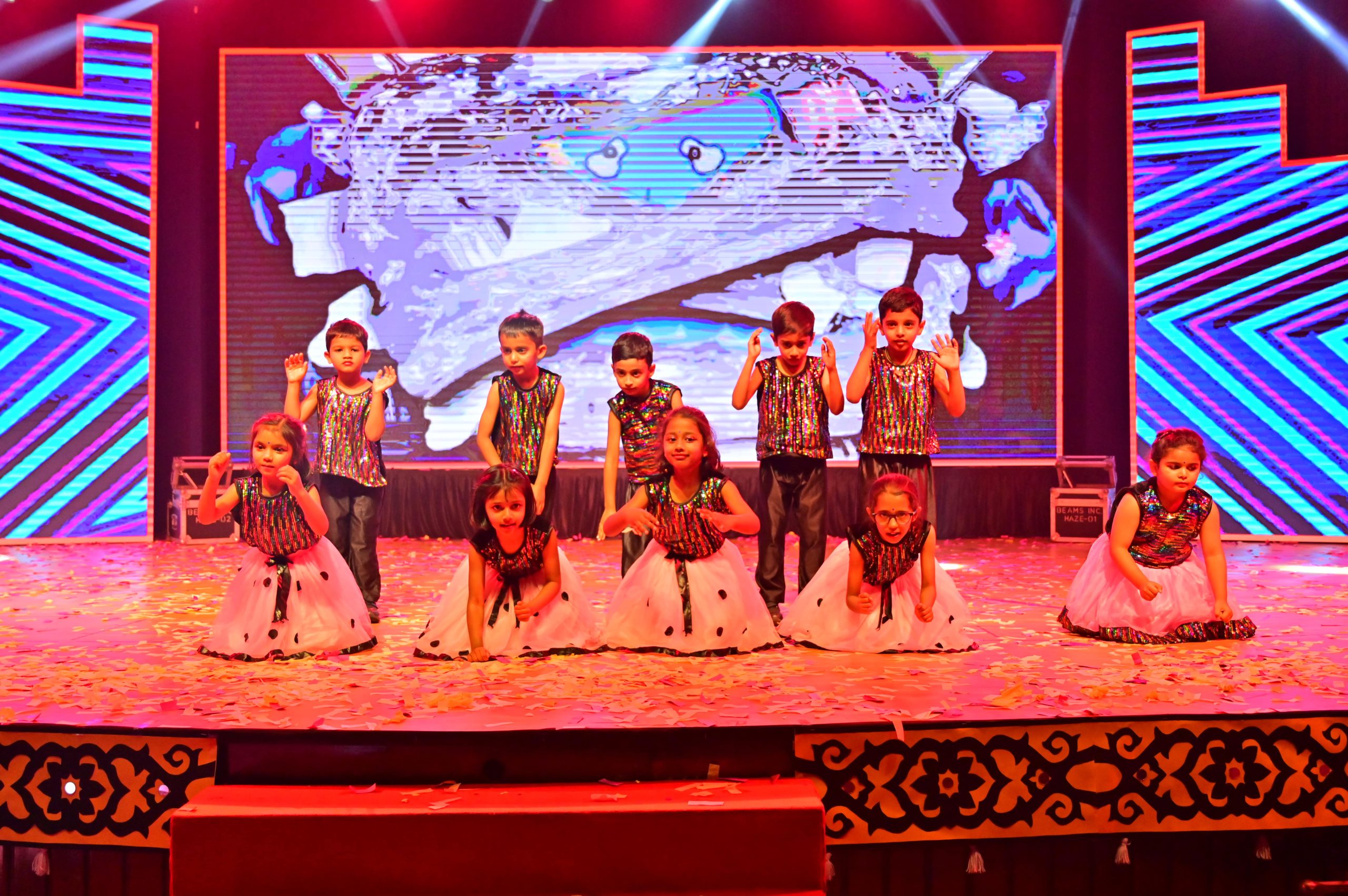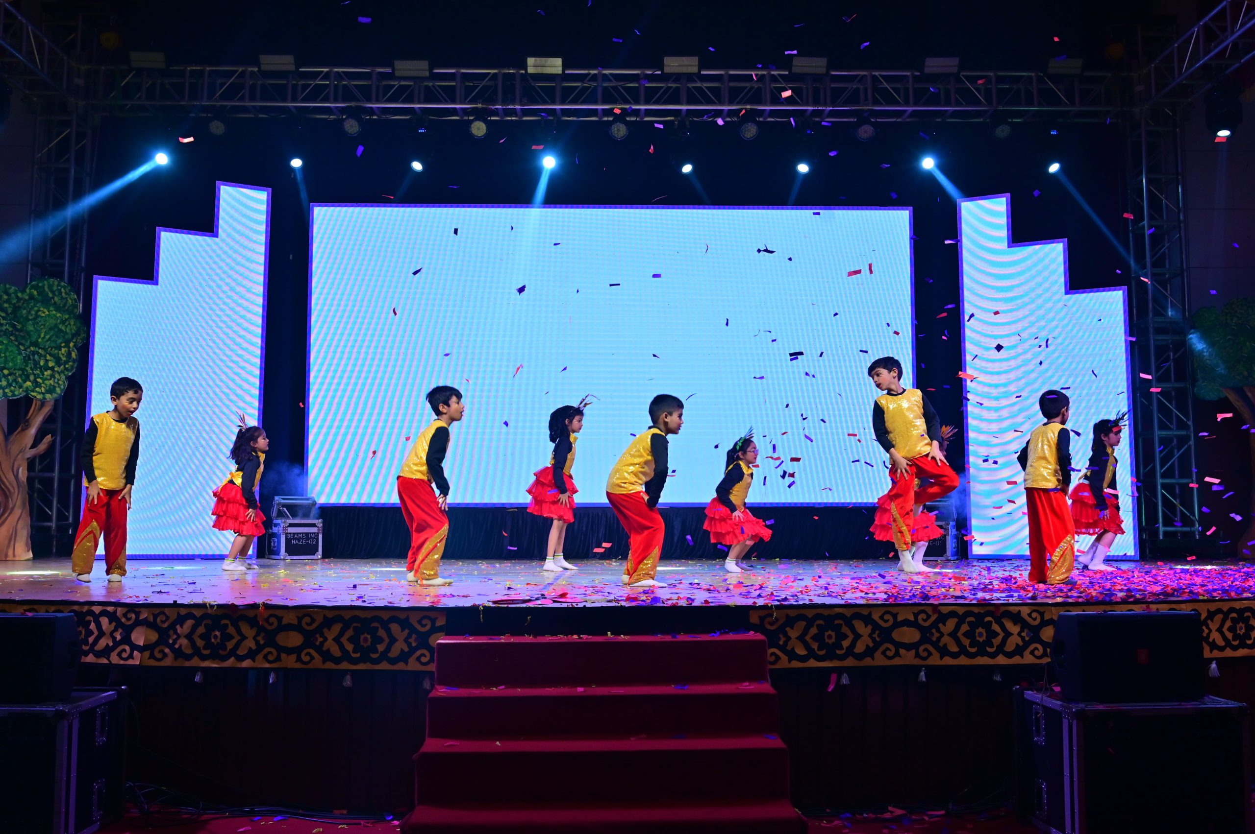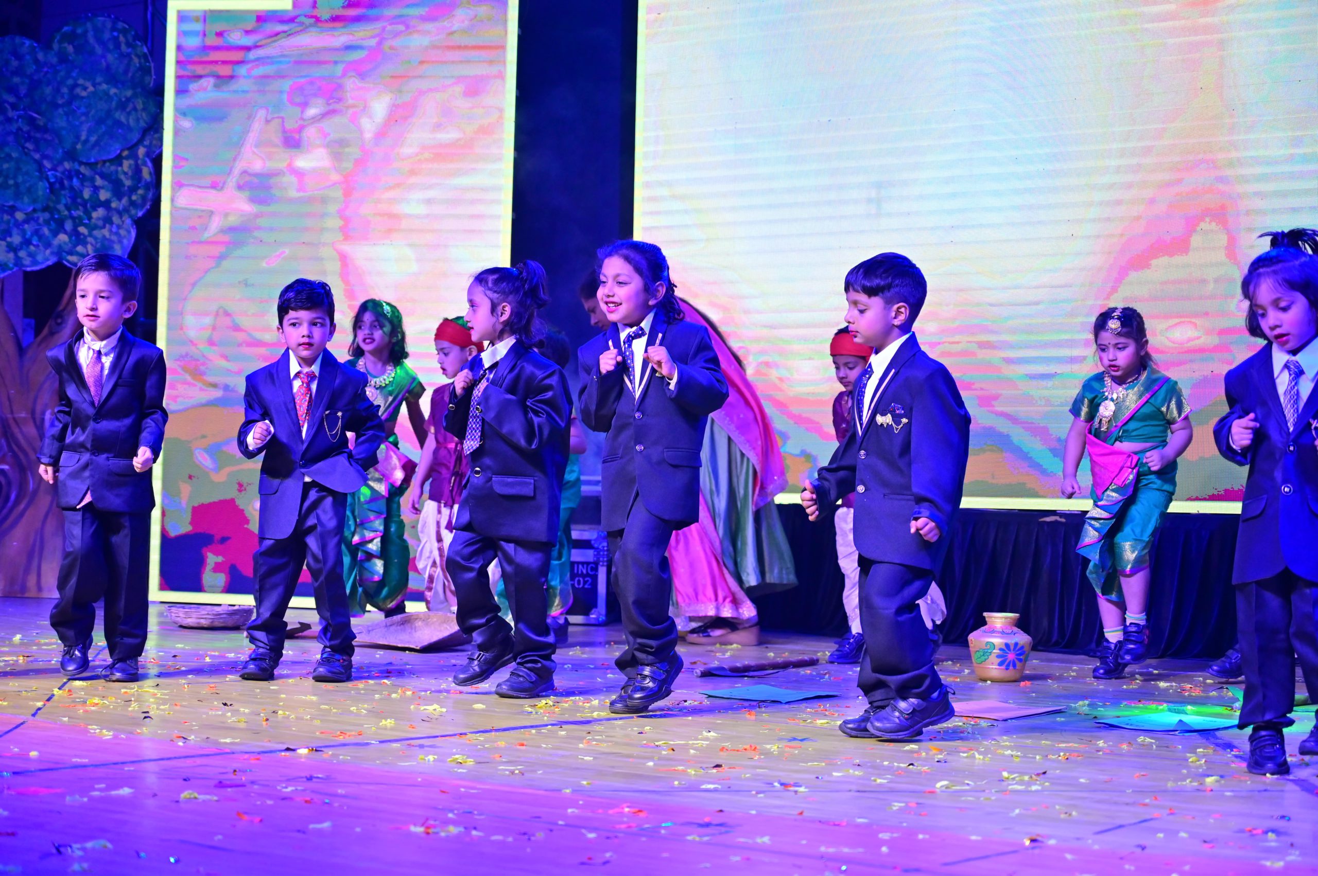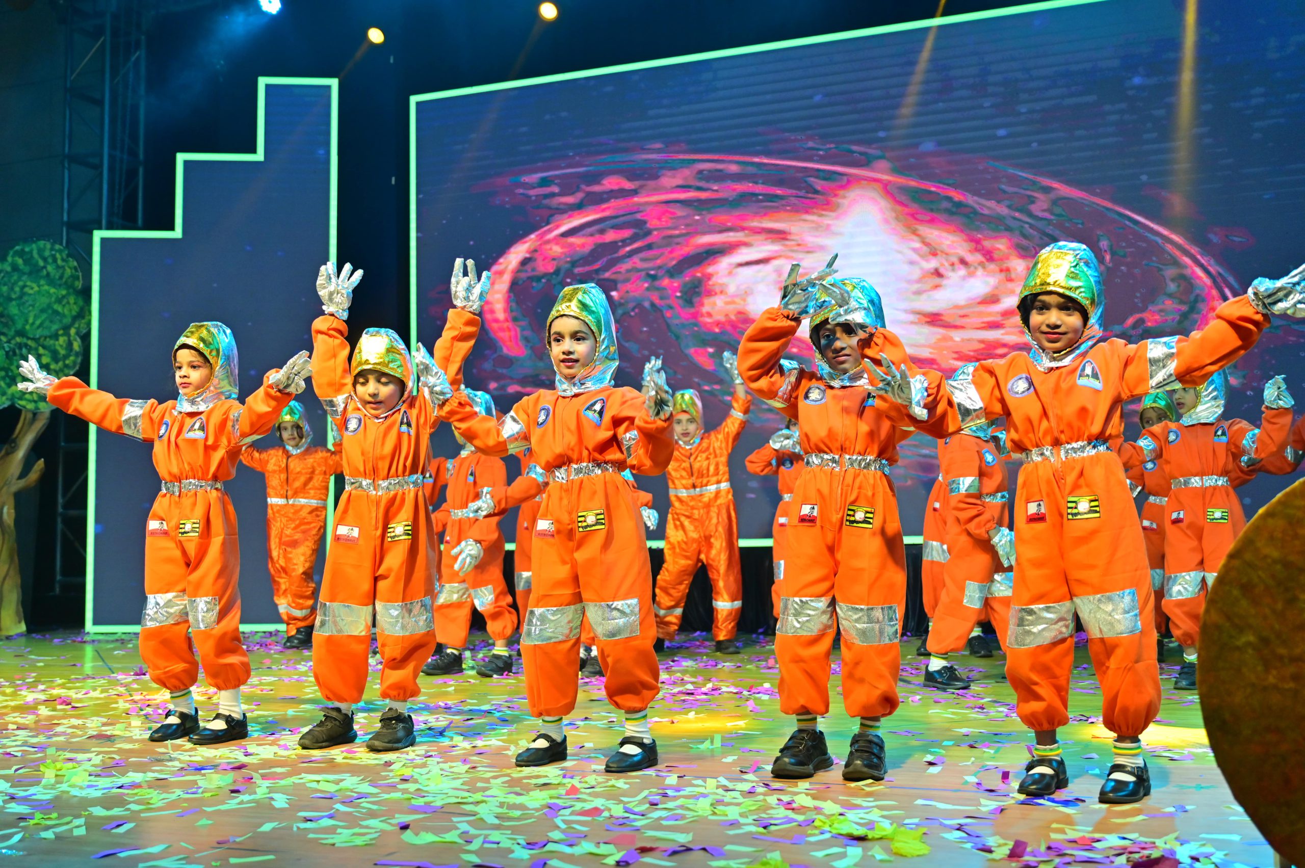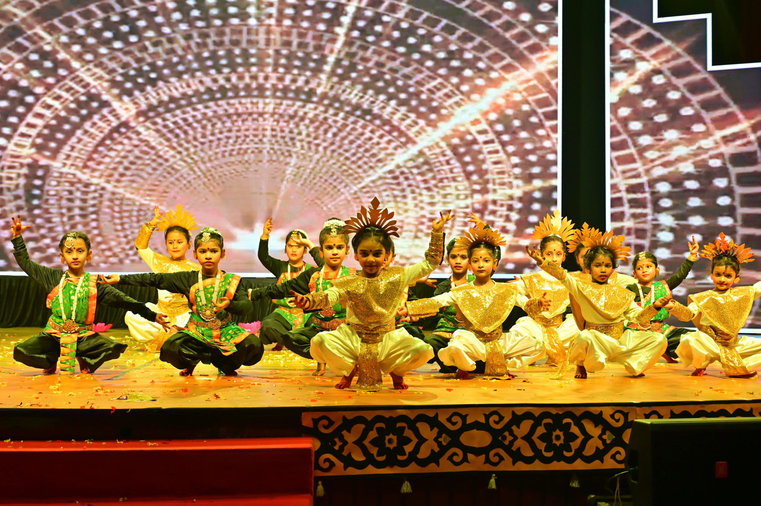 The evening began with the ceremonial lighting of the lamp, followed by a harmonious choir performance, setting the stage for a vibrant and thought-provoking journey. Through the symbolic figures of the Timekeeper and Earth Spirit, students took the audience through Earth’s past, present challenges, and a hopeful future, emphasizing environmental responsibility and sustainability. 🌱💡