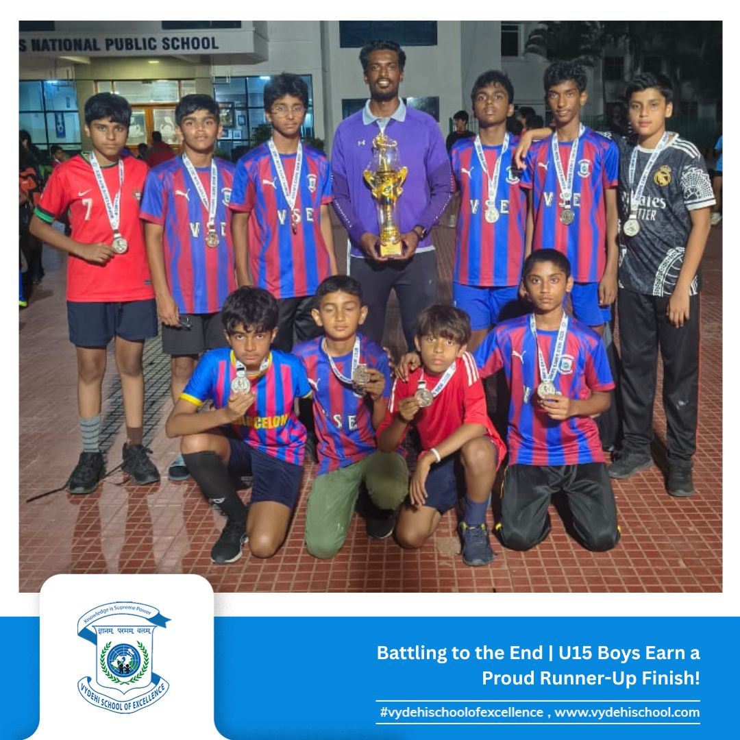 Vydehi School of Excellence proudly rejoices in yet another remarkable sporting victory at the BGS NPS Interschool Football Tournament held on 12th & 13th September. Our players dazzled with skill, teamwork, and determination.