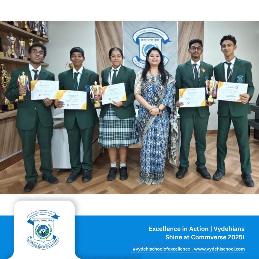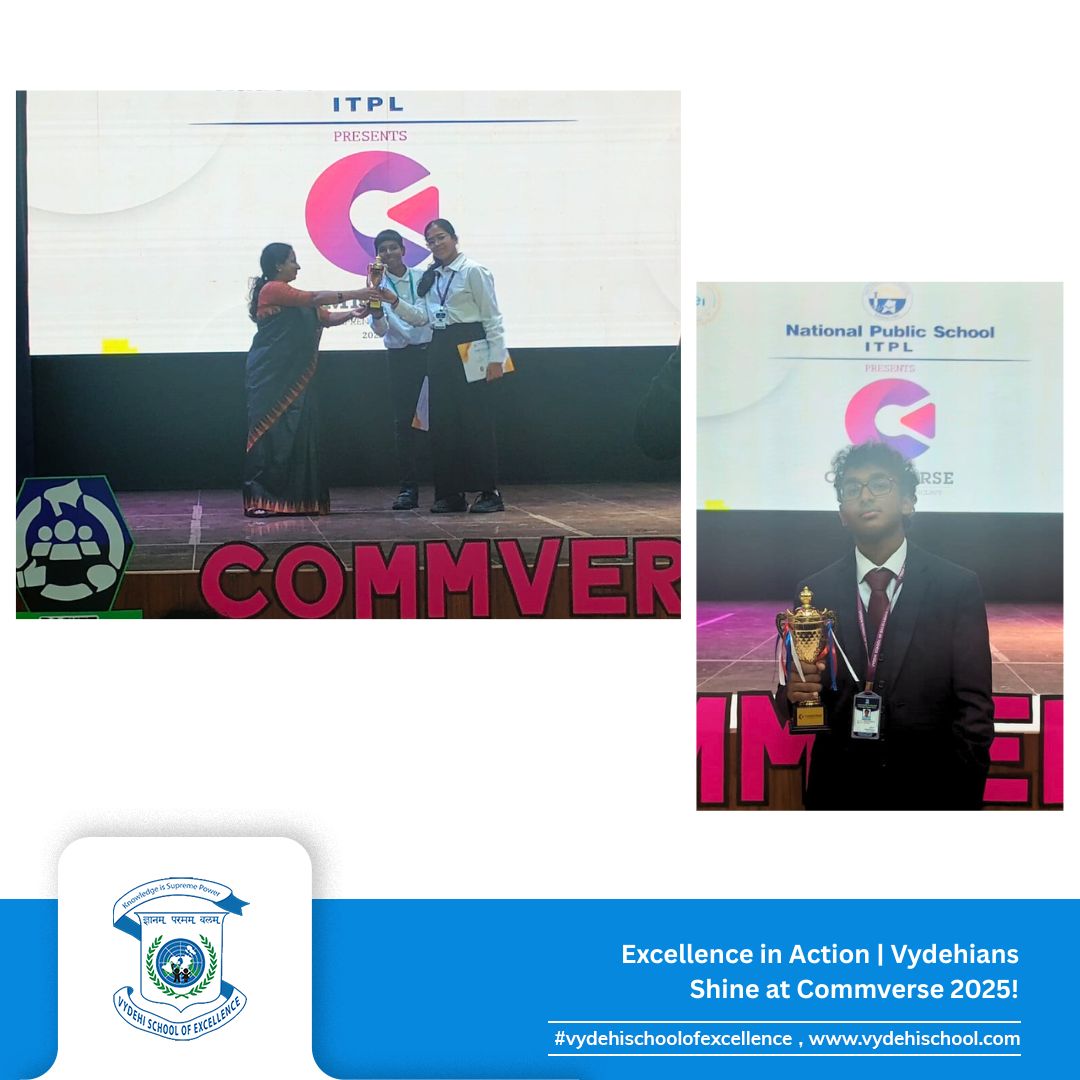 Vydehi School of Excellence actively participated in Commverse 2025, the prestigious interschool commerce conclave hosted by National Public School, ITPL on August 2nd, 2025. The event was an exciting platform that brought together future entrepreneurs, marketers, and legal minds from across Bengaluru to battle it out in intellectually stimulating challenges.