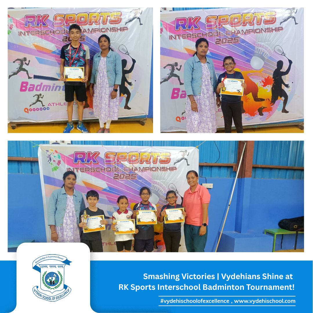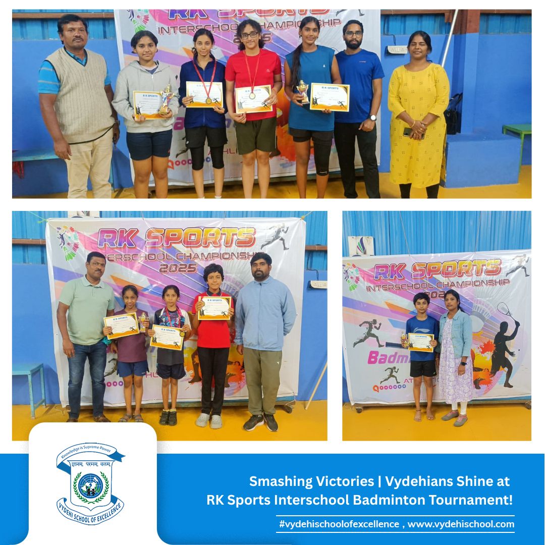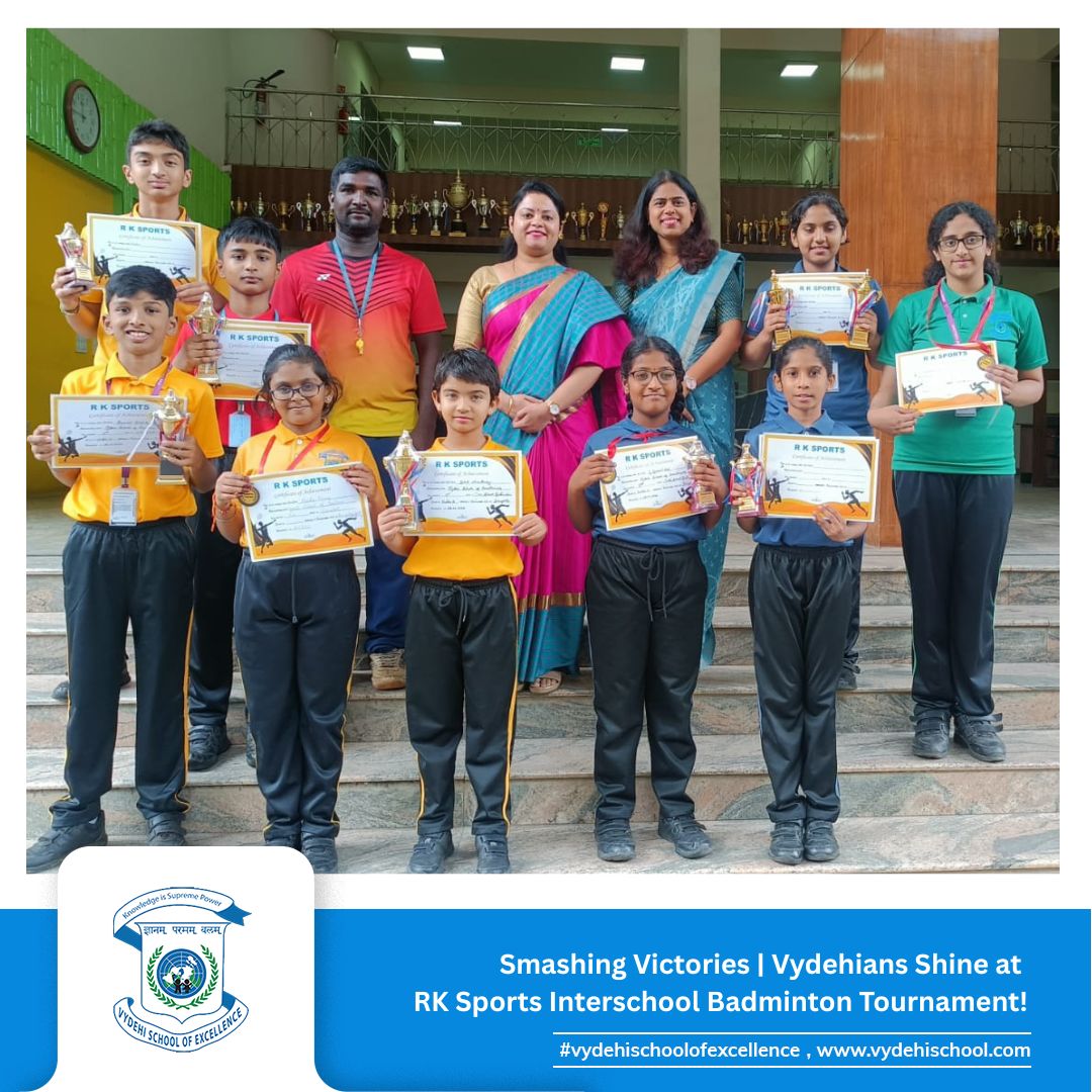 On 28th August 2025, our talented shuttlers from Vydehi School of Excellence showcased grit, passion, and unbeatable skills at the RK Sports Interschool Badminton Tournament held at Bangalore Sports, Siddapura, Whitefield.