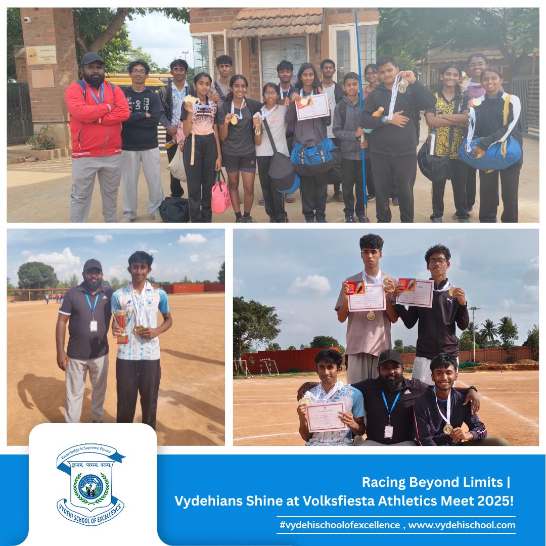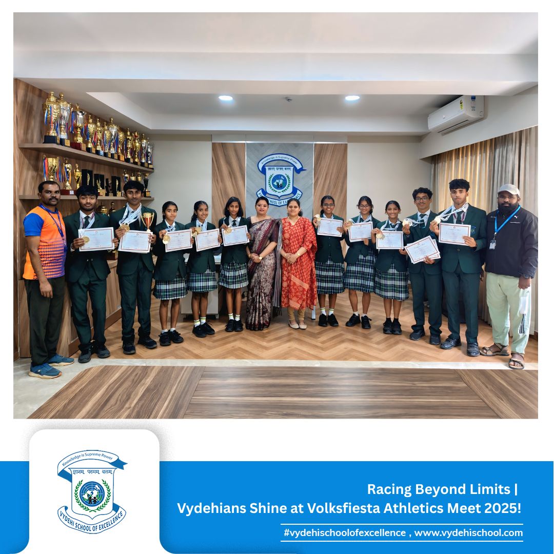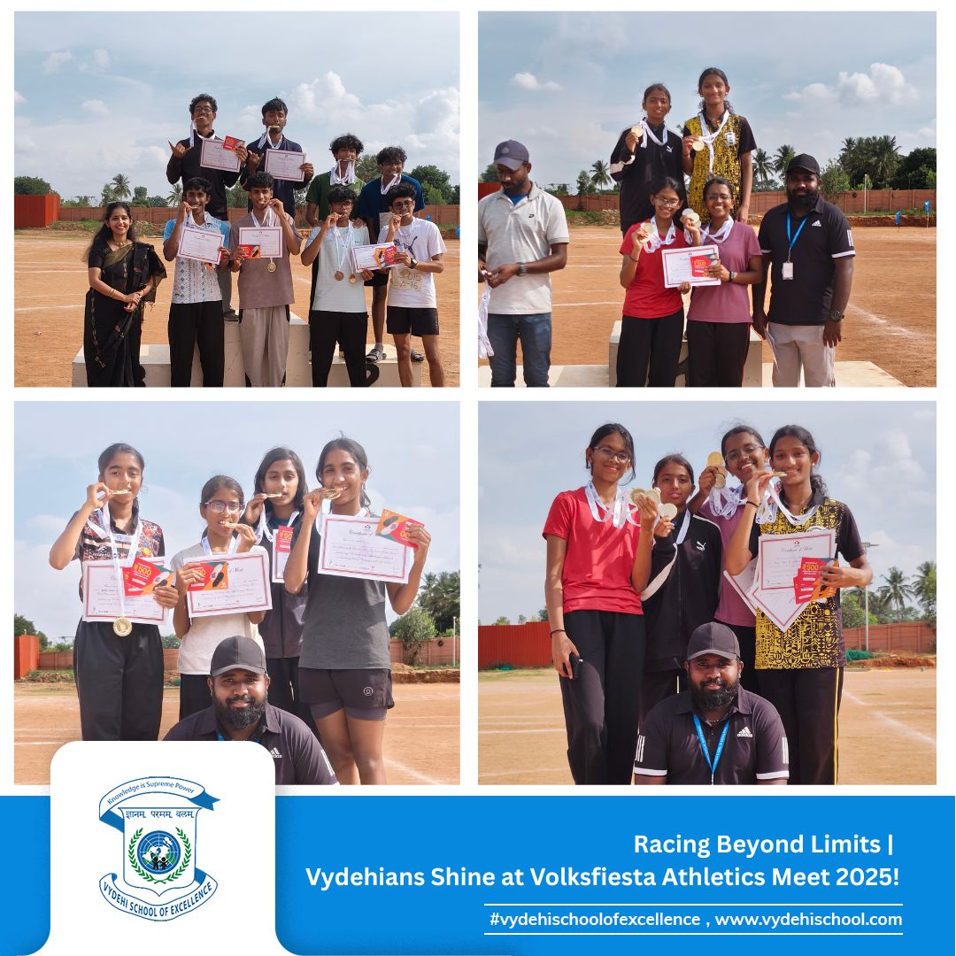 Vydehi School of Excellence is proud to celebrate the unstoppable spirit of our young athletes who brought home a flurry of medals π at the Volksfiesta Athletics Meet 2025, hosted by Deens Academy, Gunjur, on 21st & 22nd August.