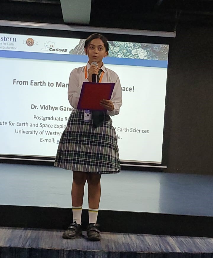 On June 20, 2024, students and faculty at Vydehi School of Excellence were treated to an extraordinary seminar led by Dr. Vidhya Ganesh Rangarajan, a renowned planetary scientist and professor at the University of Western Ontario in London, Canada. The seminar, titled “From Earth to Mars and All things Space,” aimed to ignite curiosity and inspire the next generation of astronomers and space enthusiasts.