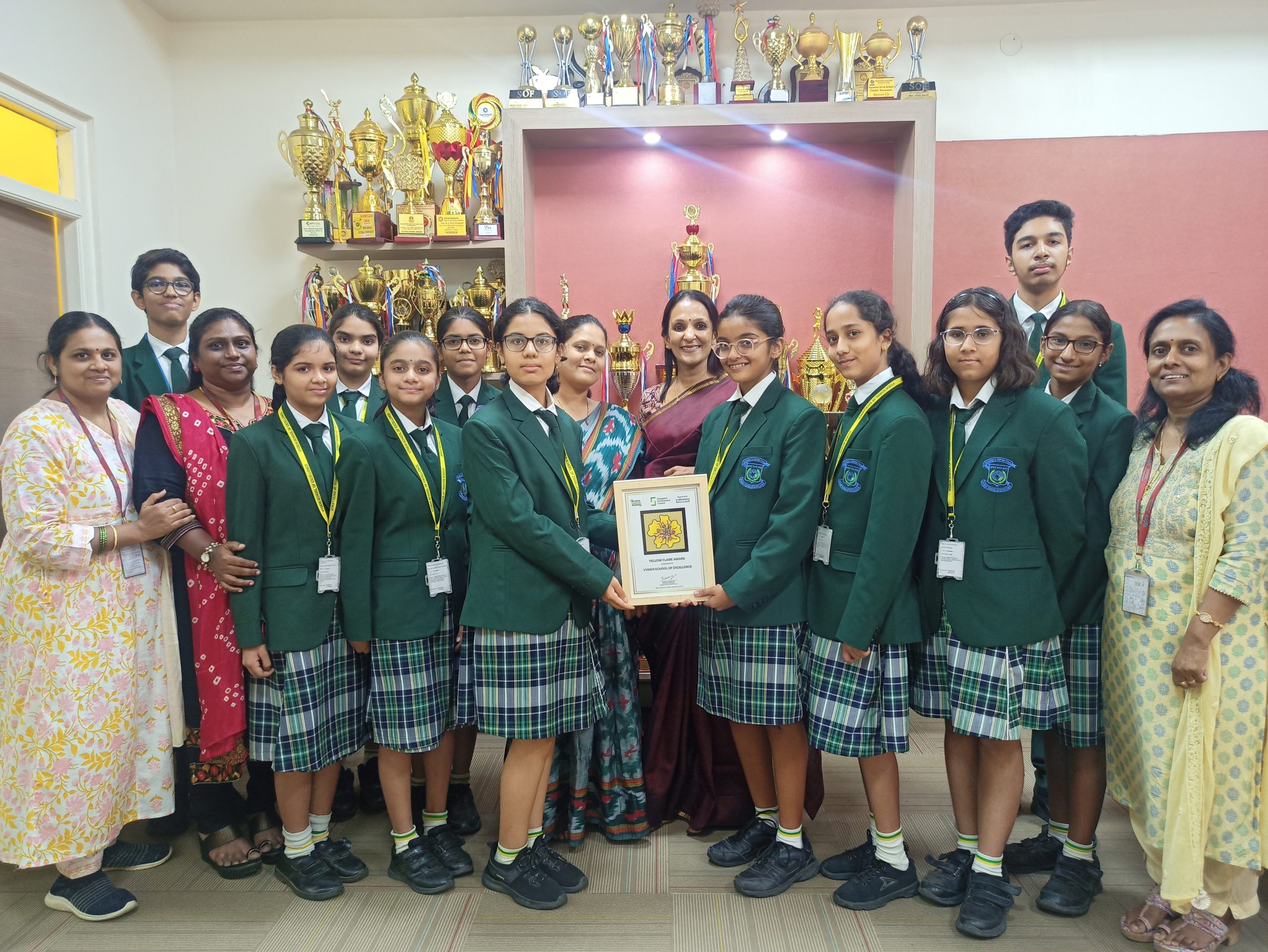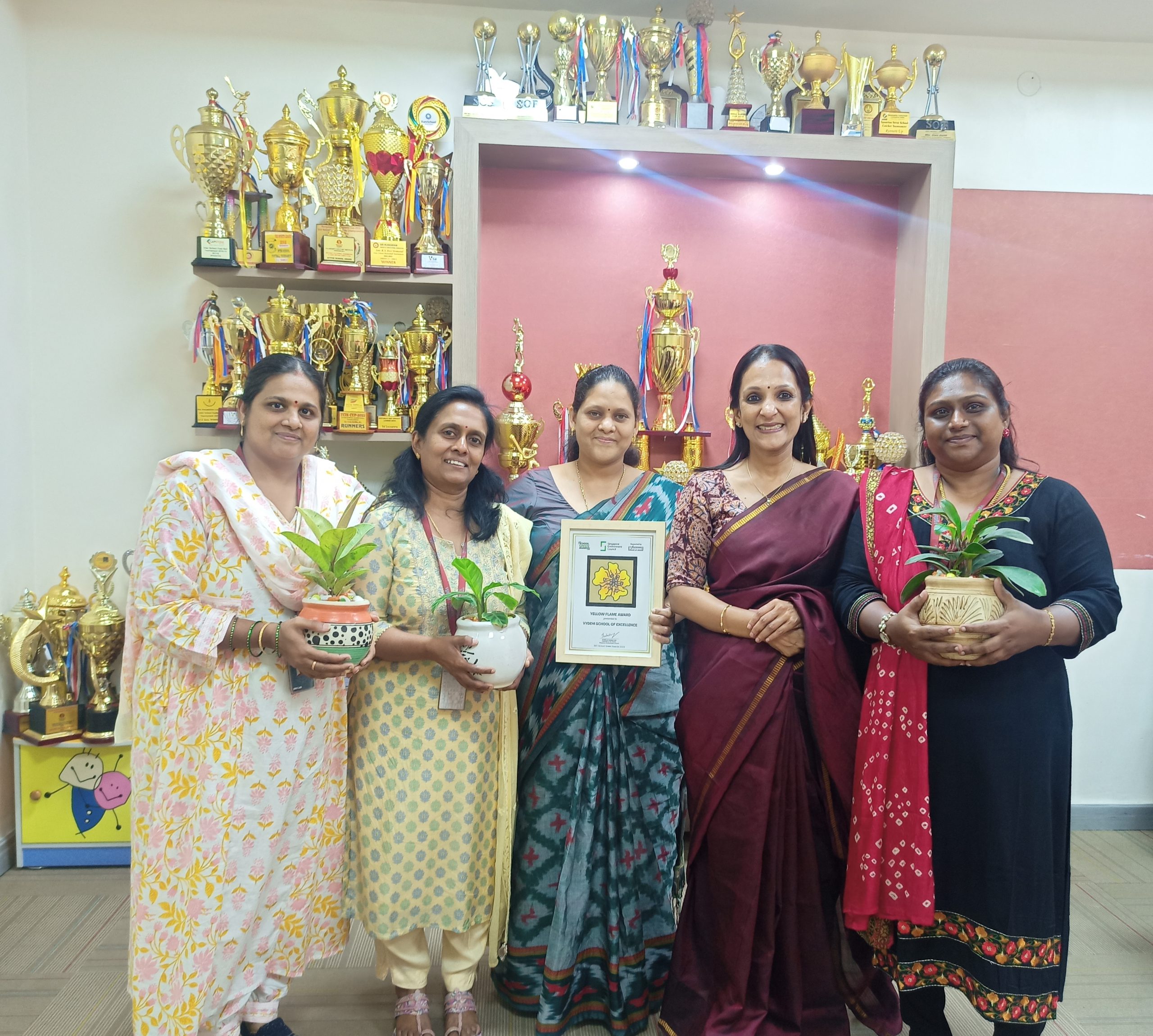 Vydehi School of Excellence has been honoured with the prestigious Yellow Flame Award by the Singapore Environment Council. This accolade recognizes the school’s outstanding contributions to environmental sustainability and its commitment to fostering eco-friendly practices. The award serves as a beacon, spotlighting our efforts towards creating a sustainable environment within and beyond its campus.